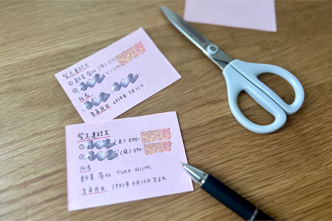 飲み薬で治療中の場合は、おくすり手帳をコピーして入れておくのもよいですね。書くのなら、血液をサラサラにするお薬や免疫力を弱めるお薬など、特殊なものだけ書いてください」
