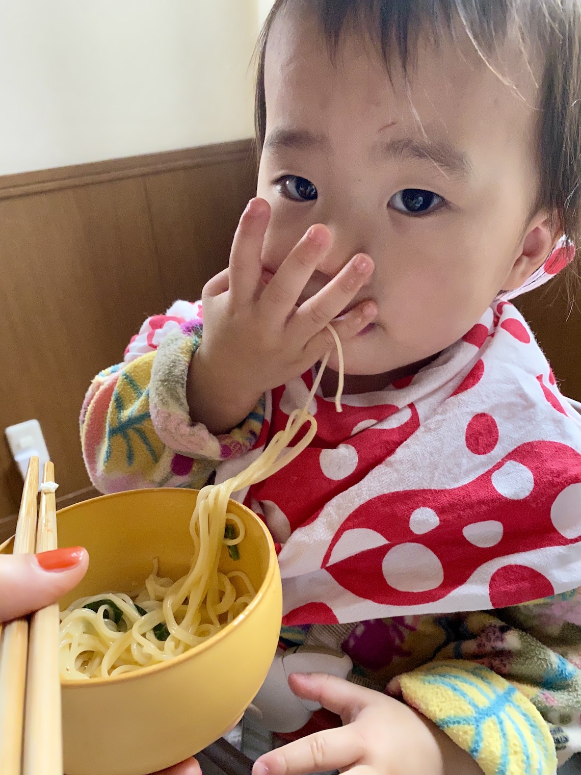 わが子が1歳ごろの、早めの夕食。なんとこの日は幼児用のレトルトうどんだけで済ませていたもよう……。