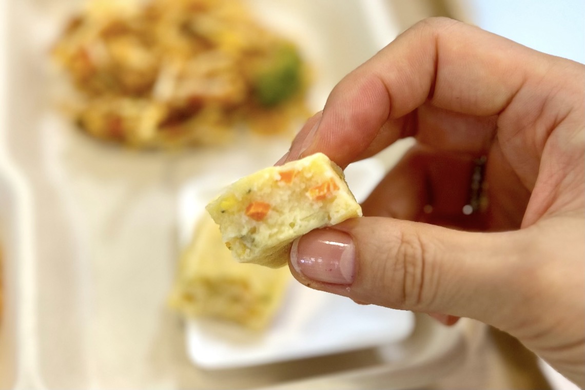 こうした工夫も、家庭で実践しようと思うと大変ですよね。試食した「さわらの豆乳シチュー」にもコロッとにんじんが入っていましたが、するっと噛むことができました。また、素材本来の甘みはありつつ独特のにおいは感じられなかったので、丁寧に調理されていることも伺えます。