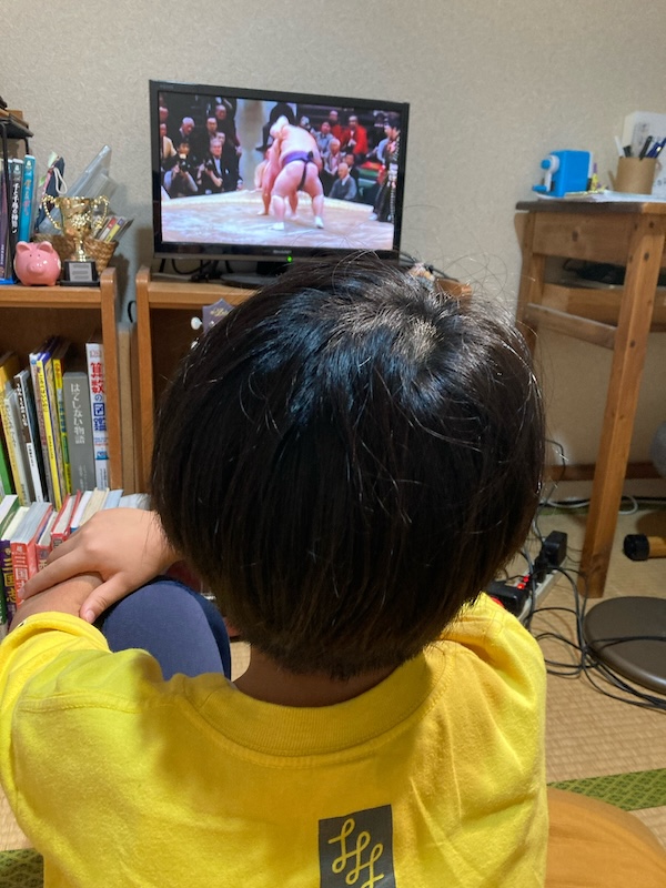 相撲のある期間は、帰宅した父に、その日の結果を、興奮しながら事細かに教えてくれます。短期間の内に、力士の名前や、決まり手など、相撲の知識がどんどん増えていてすごい!