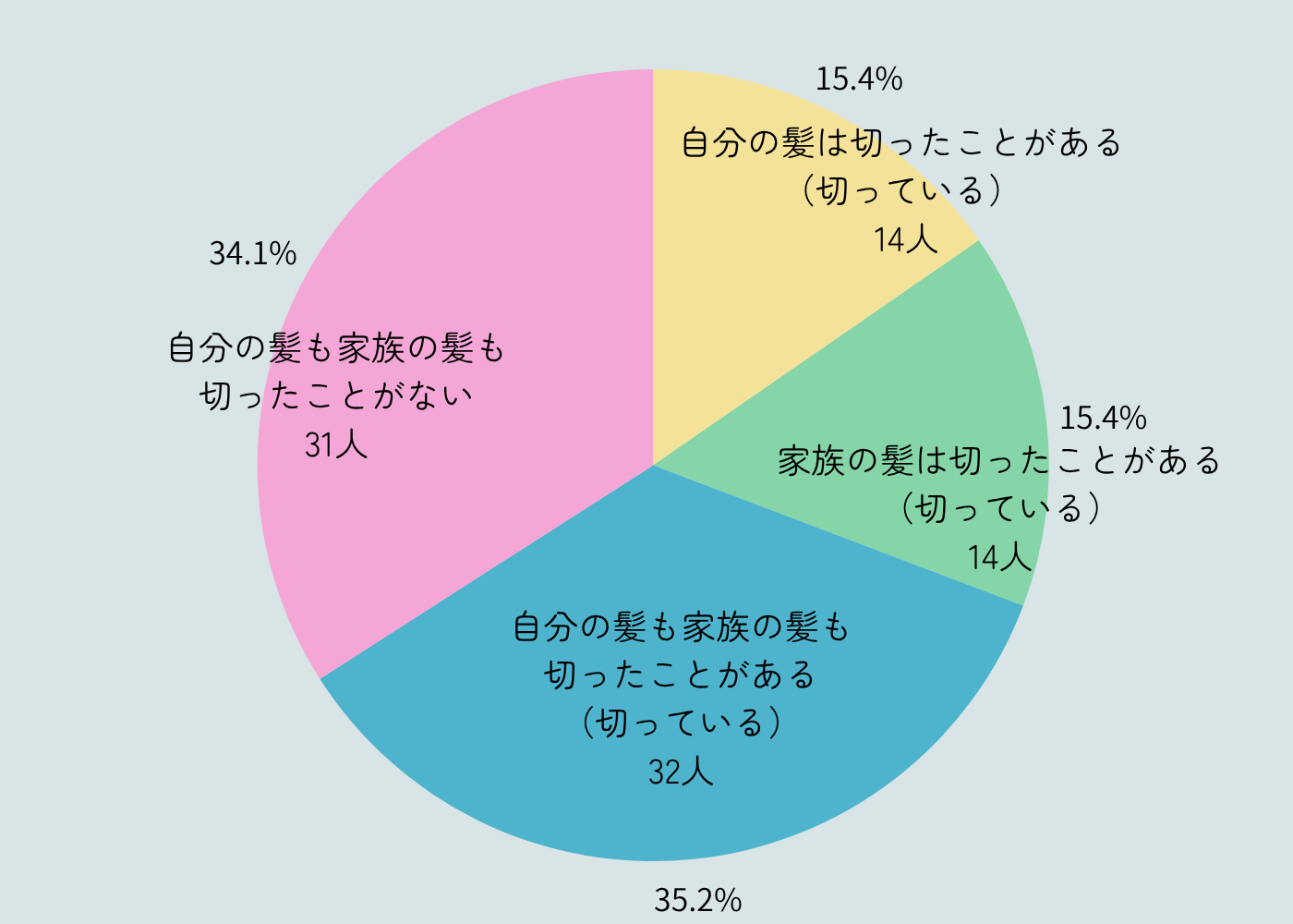 - 自分の髪も家族の髪も切ったことがない……31人(34.1%)
