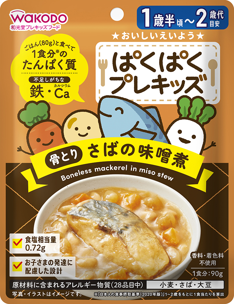 2025年7月に新登場した幼児食ブランド「ぱくぱくプレキッズ」は、「骨とり さばの味噌煮」「白身魚だんごの中華あんかけ」「ごろごろ具材のチキンカレー」「やわらか鶏のクリームシチュー」「チキンと大豆のトマト煮」「野菜たっぷりハンバーグ」「野菜たっぷりキーマカレー」7つの味の中から選ぶことができます。どれもオープン価格(実勢価格約268円~<編集部調べ>)と、そこまで高すぎないところもポイント。