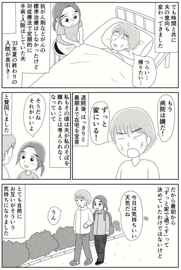 初めは「死ぬ時は病院で」と、叶井さんも倉田さんも考えていたそうですが、2023年9月、胆管のステント交換手術が1カ月間の長期入院になったことをきっかけに、叶井さんの考えは一変。