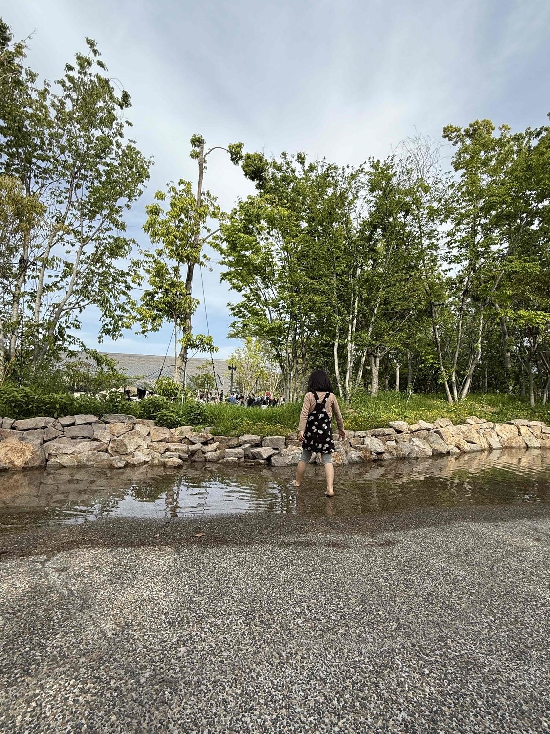 万博会場中心に「静けさの森」という緑地があり、その中に子どもが入りたくなる池のようなところを発見。