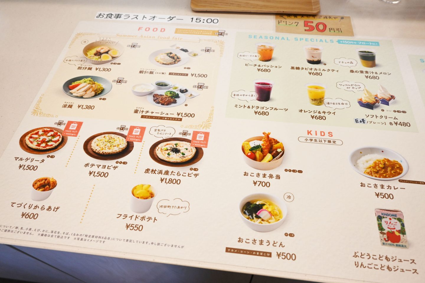 ほかにも地元のタラコを使ったピザや、子どもが好きな唐揚げ、ポテト、お子様ランチのようなおこさま弁当、おこさまうどん、おこさまカレーがありました。