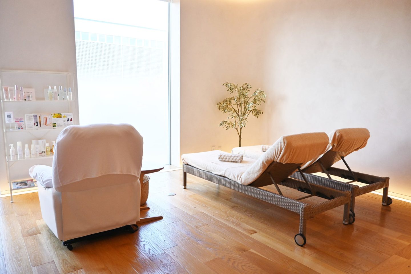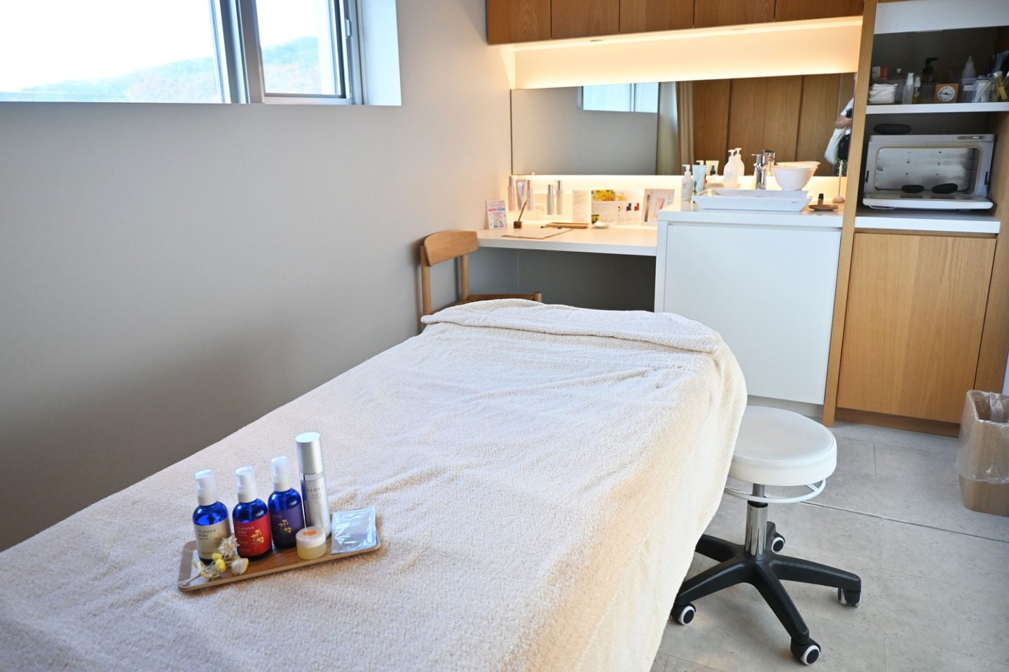 工場のある建物には『ナチュラルサイエンス』『ナチュラルアイランド』のアイテムを使った施術が受けられるスパ「アクアサロン」があります。有機ハーブオイルを使った全身トリートメントや、お着替え不要で気軽に受けられるヘッド&ショルダーマッサージは、日々の疲れを癒すのにおすすめ。