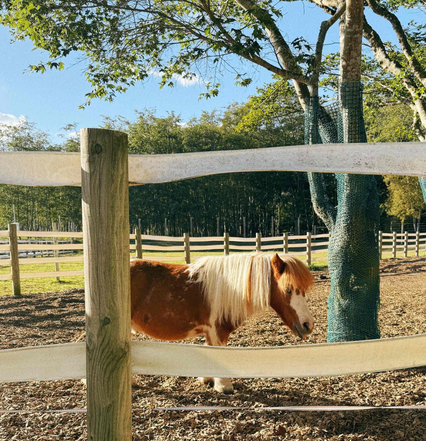 この日はお休みだったので、ポニーたちはお家のほうにいました。小柄なポニーなので、お子さんも親しみやすそうです。
