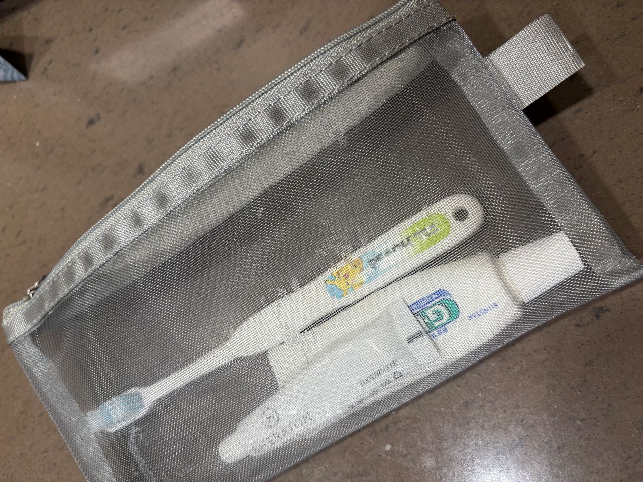 以前はジップ付きバッグに入れてました。でも、完全に乾いた状態でない歯ブラシをビニール袋に入れると嫌なニオイがしたり、菌が繁殖することもあるので、今はメッシュポーチ一択。これ、地味におすすめです。