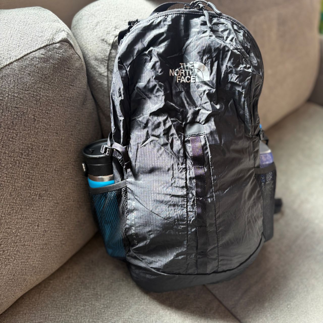 我が家の旅に欠かせないのが、小さくたためるザ・ノース・フェイスの神リュック“メイフライバッグ22”です。