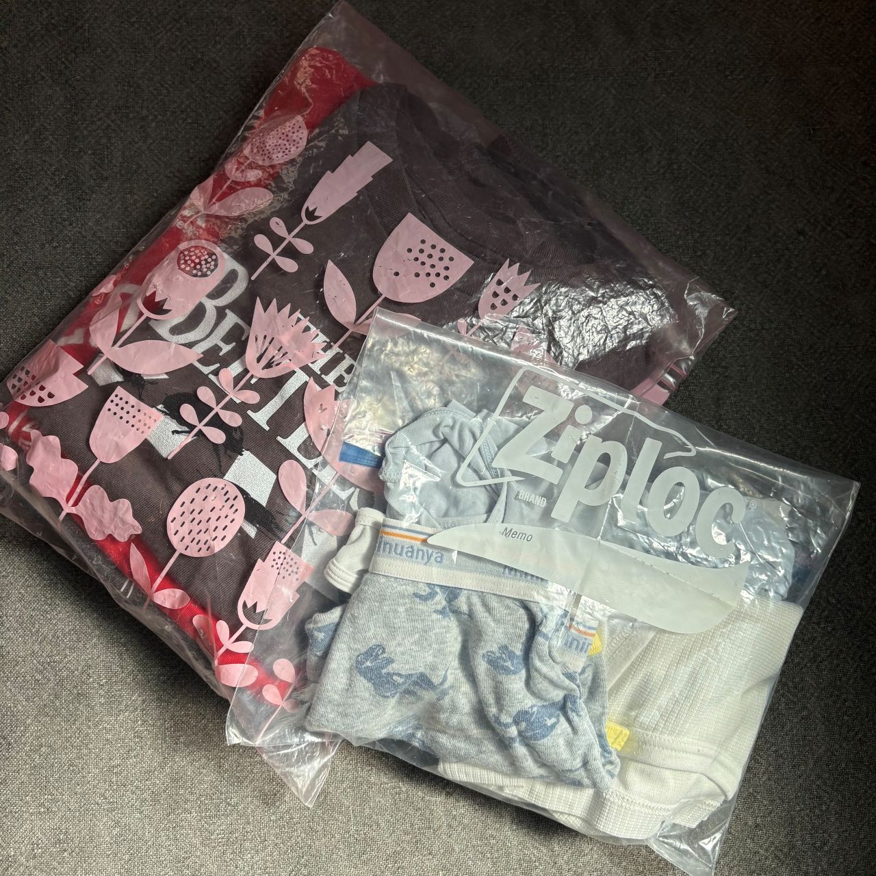 我が家は子どもの衣類などを小分けにせず、パンツ・靴下・肌着で1つ、トップスで1つ、ズボンで1つ、という感じで保存袋に分けておき、旅行中は自分の服や下着を、自分で取り出してもらうようにしています。