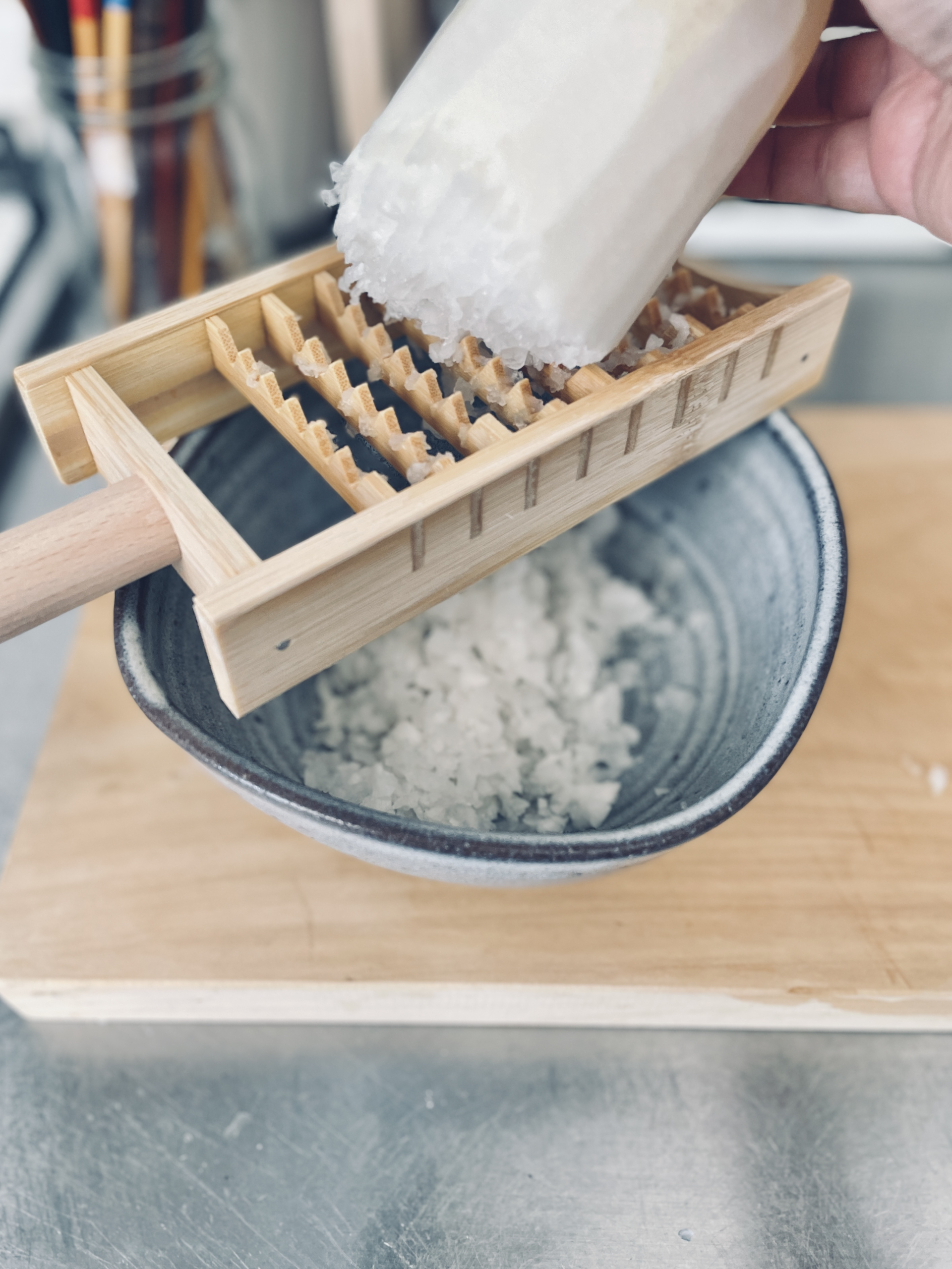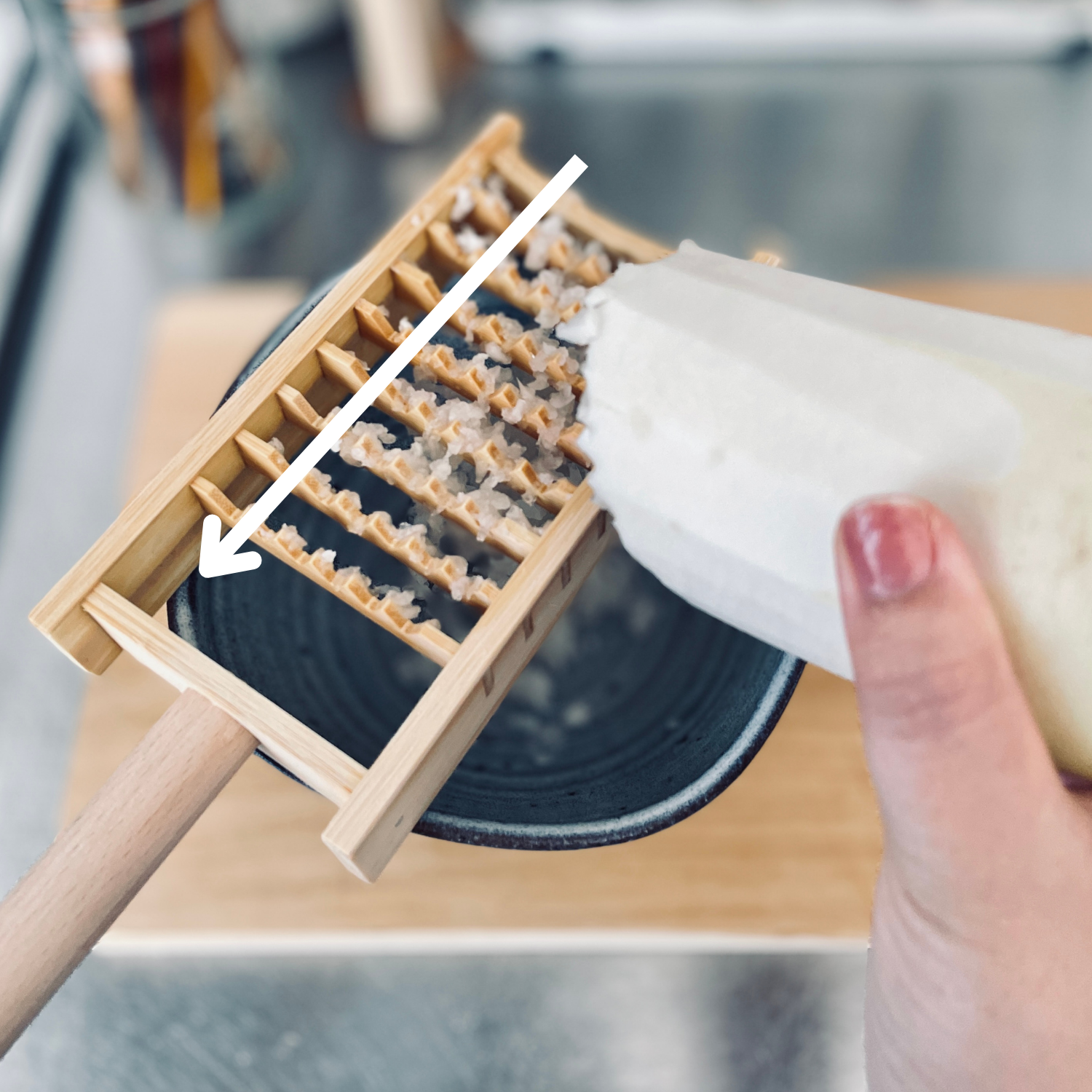 オススメポイント2:ザクザク削れて短時間でおろせる! 一方方向(奥から手前)に引くのがコツです。