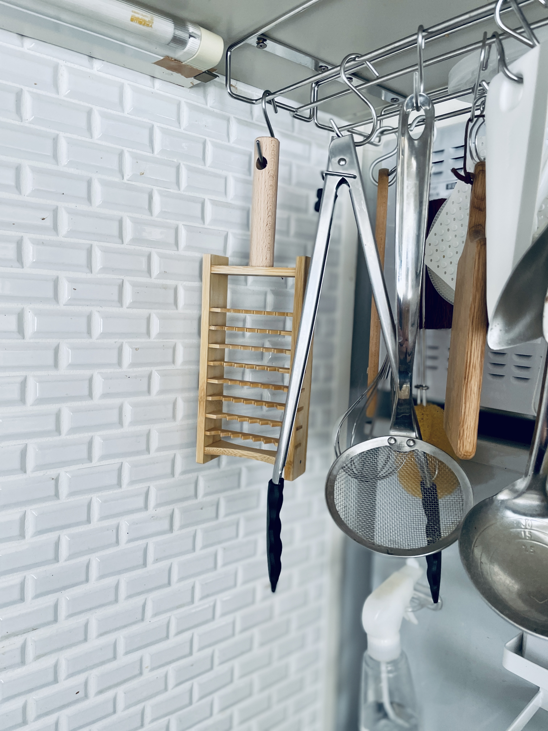 竹製なので洗った後は吊るして乾かしています。持ち手につるし穴があるのも購入ポイントでした!