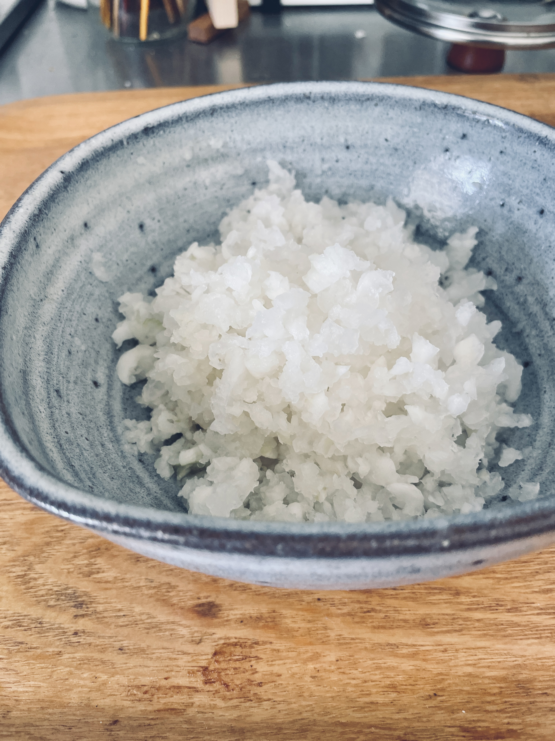 「鬼おろし」を使った大根おろし。おろしたてで、この状態。まったく水分が出ていないのがわかるでしょうか。