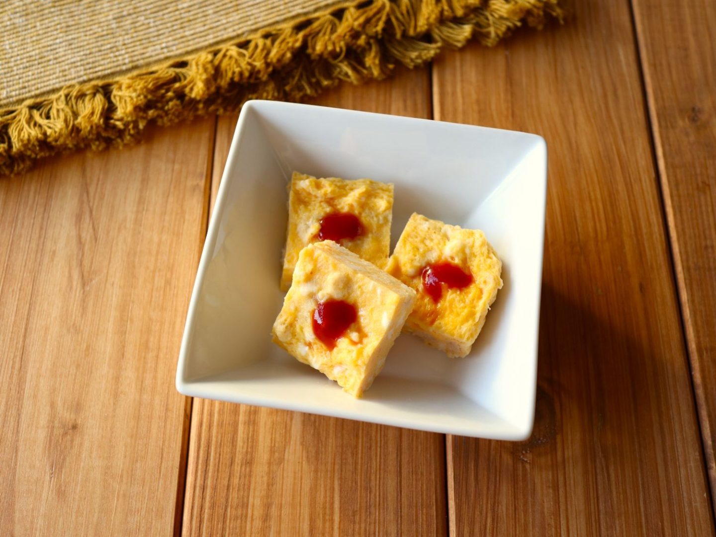 粗熱が取れたら好きな大きさに切り、お好みでケチャップをかける。