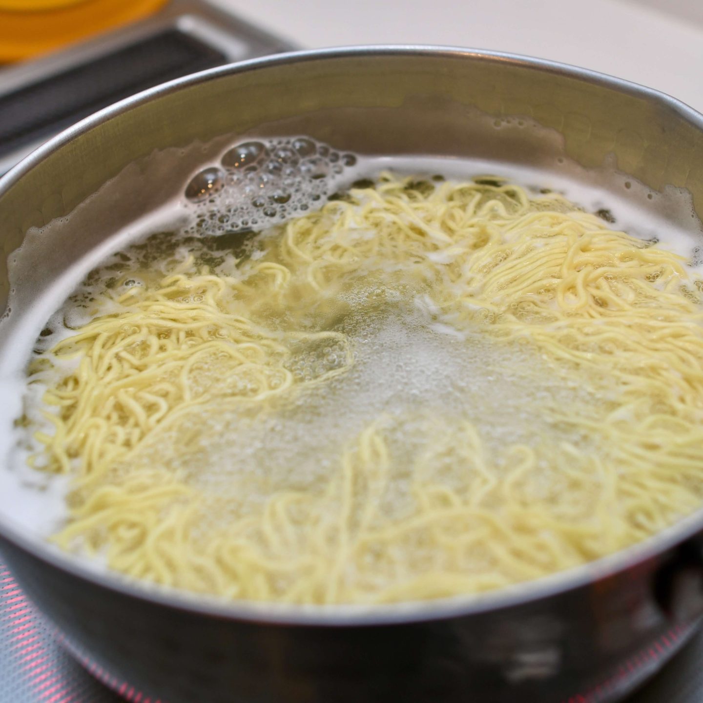 スープの温度は90℃以上にしたいので、ぐらぐらと沸騰するまで温めるようにしてください。