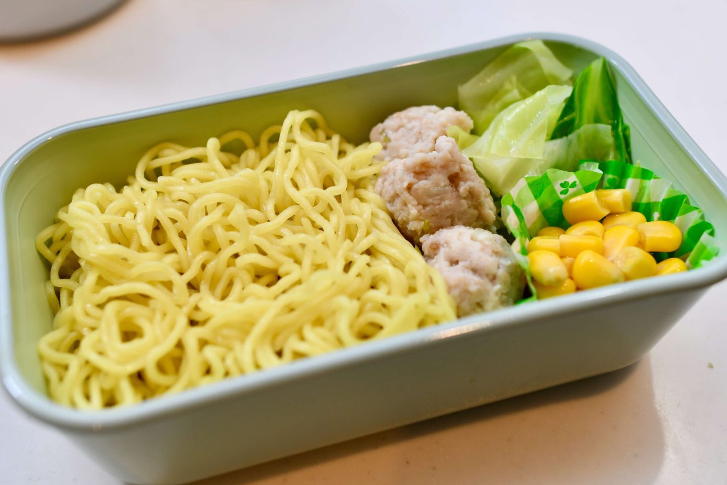 写真だとわかりにくいですが、麺は菜箸で一口大ずつまとめてから詰めています。