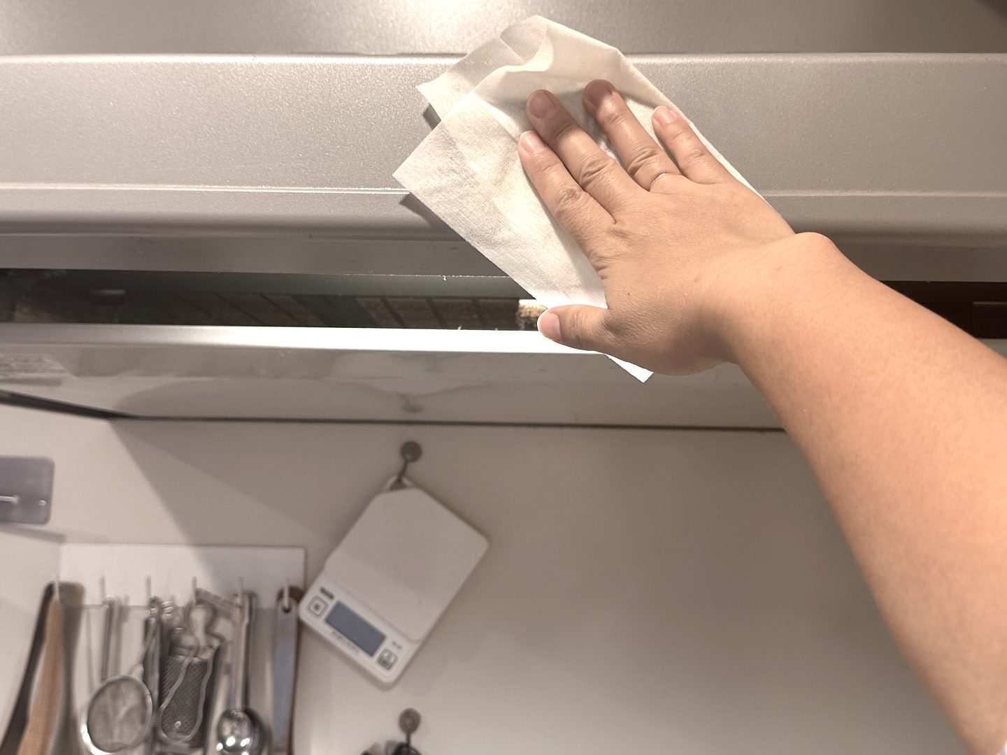 さらに、コンロ台だけでなく、壁面に飛び散った油汚れやレンジフード周りなどもササッと拭くことができます。