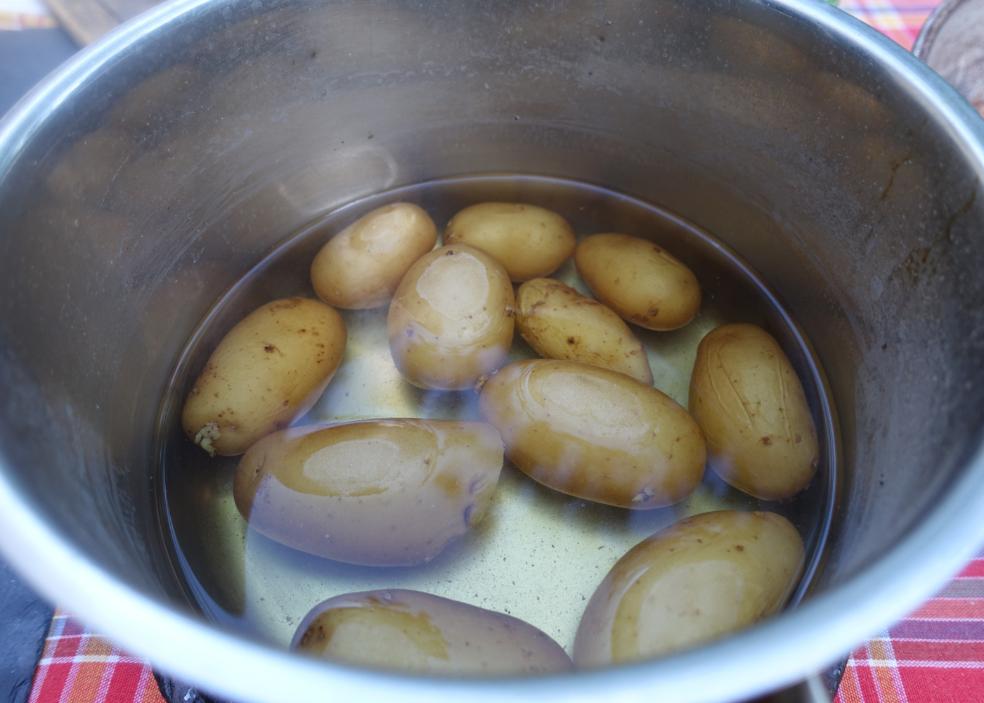 「ひたひたの水」とある場合、具材が水から少し出るくらいの量ということ。画像をみてわかるように、具材がわずかに水面から顔を出すくらいの水分量です。