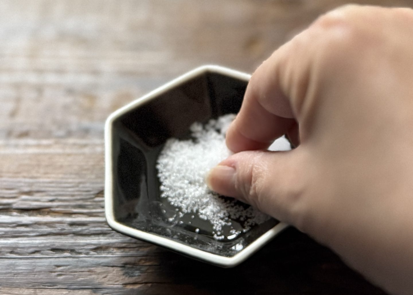 「塩少々」「砂糖少々」などの「少々」は、親指と人差し指の2本指で調味料をつまんだ分量を指します。指の大きさによって分量は多少変わりますが、一般的には小さじ1/8程度といわれています。
