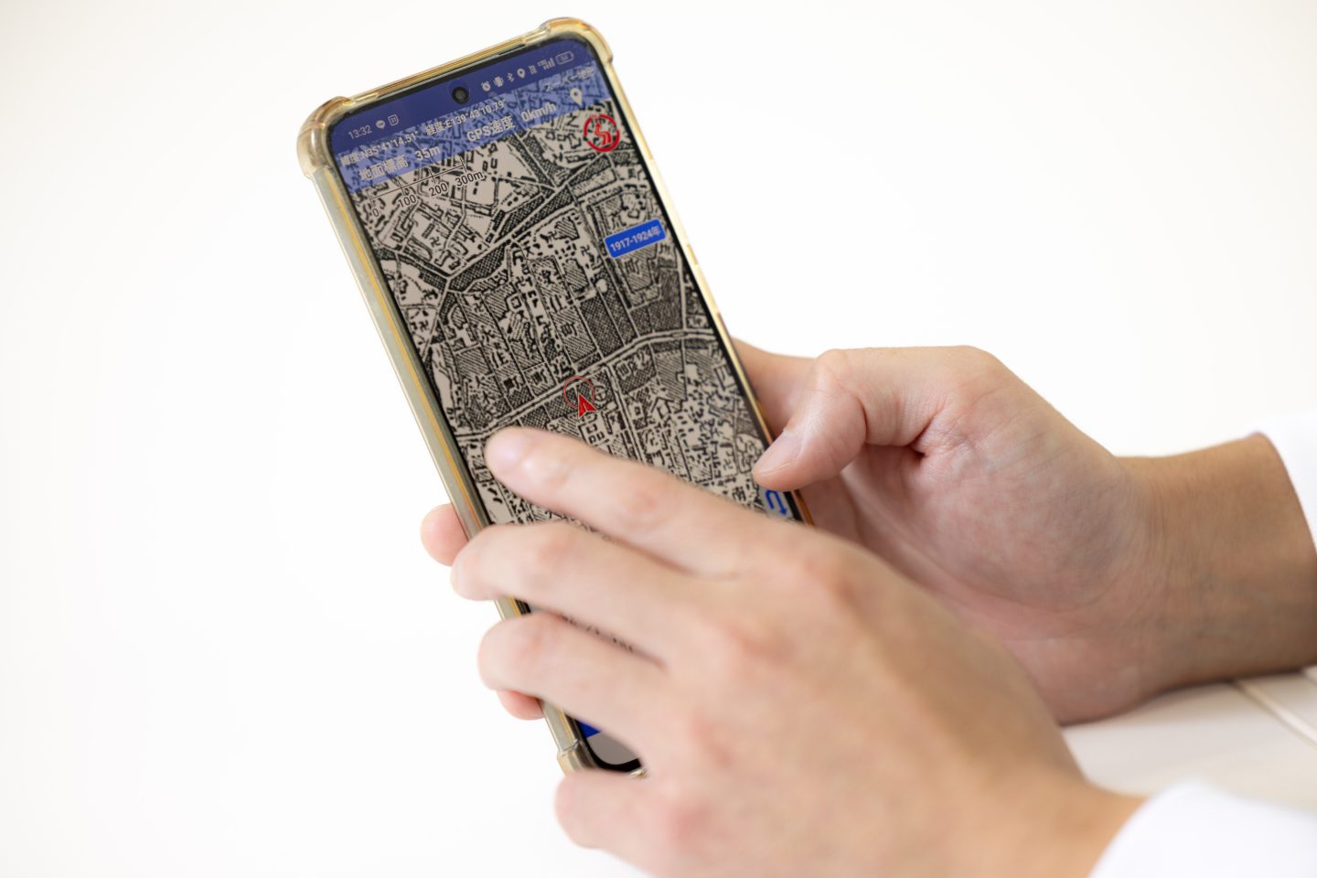 街の古地図を確認する方法はいろいろありますが、小林さんがオススメしてくれたツールは地形図アプリ『スーパー地形』。こちらは日本全国の現在の地形図はもちろん、過去の地形図も確認することができるそうです。