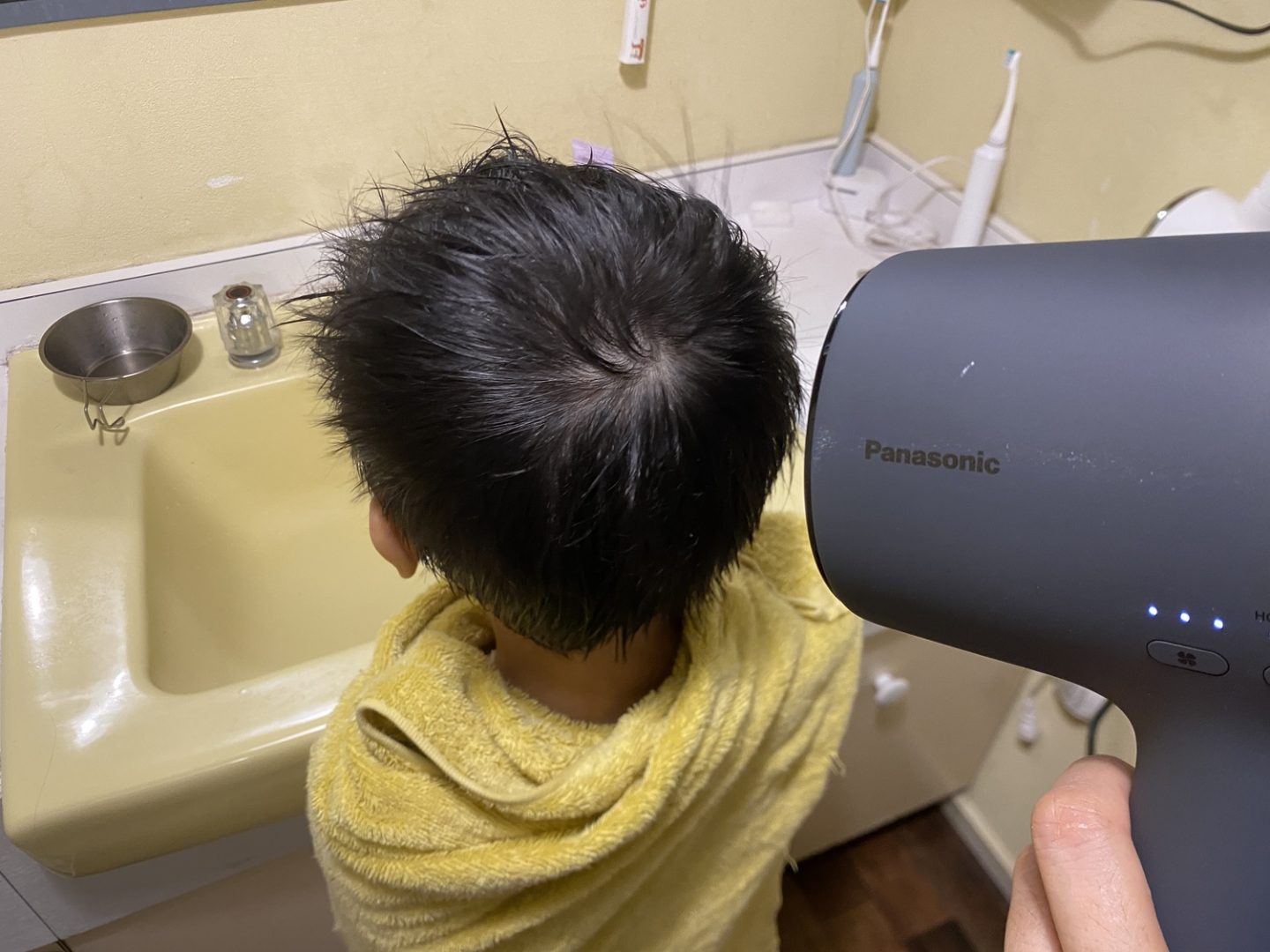 お風呂上がりに「さあ髪を乾かすぞ」と構えると、ドライヤーから放たれる風はまさに“ハリケーンクラス”。普段なら大汗をかきながらショートヘアを7〜8分かけて乾かしていましたが、ドライヤー作業が3分もかからず終了。とにかく速く髪を乾かして、子どもを寝かしつけ、自由な夜のひと時をゲットするために、お風呂上がりは一刻一秒を争う時間。この速さはまさに髪……いや、神でした!!