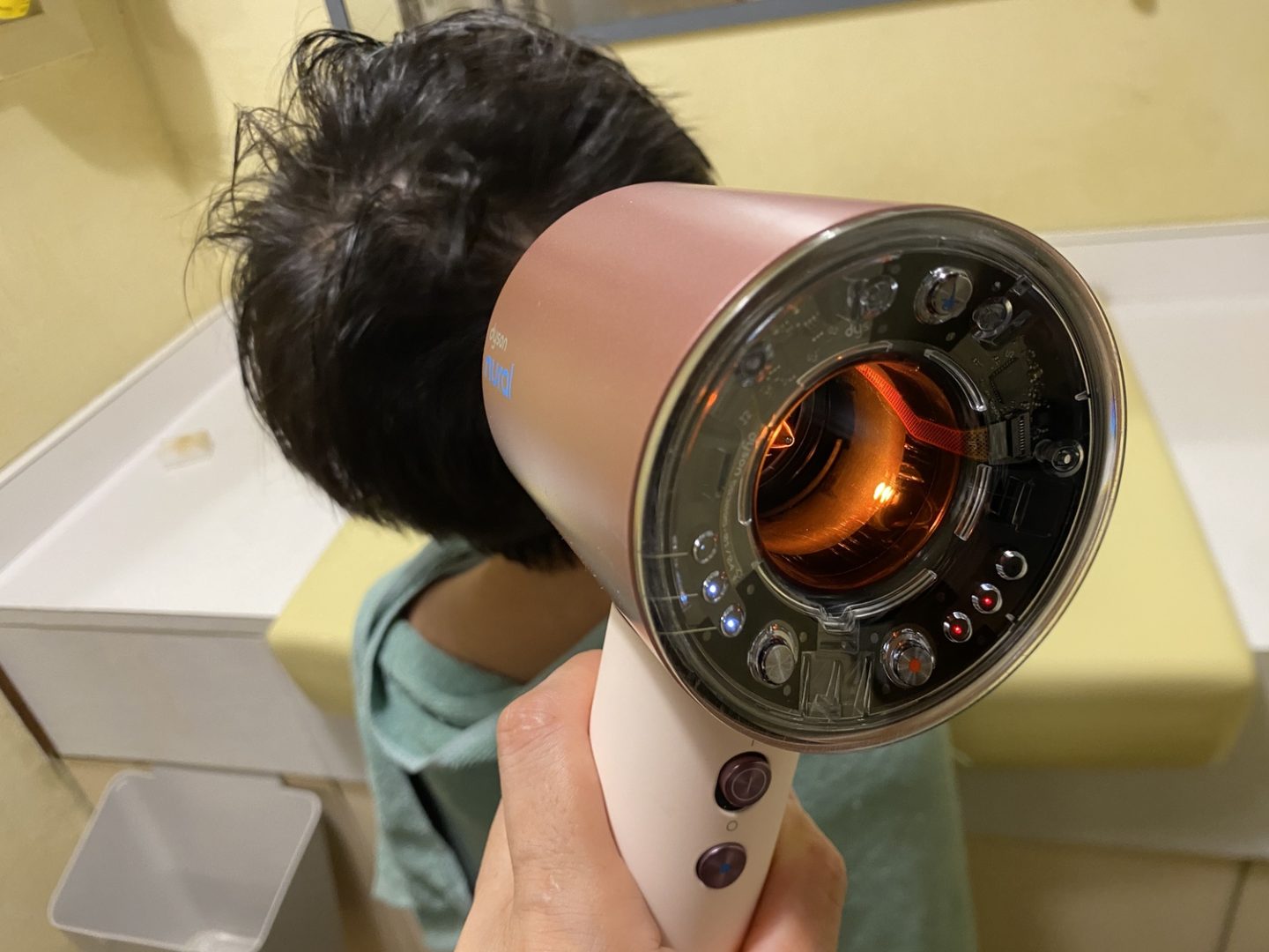 センサーで頭皮の表面温度が55℃で保たれるため、「熱い〜! もう終わって〜」とこれまでドライヤーを嫌がっていた子どもが「すぐ終わるんだ」と認識し、おとなしくなりました。お風呂上がりがスムーズに終わり、親のメンタル消耗も半減。家の平和を保つ、まさかのピースメーカーでした。