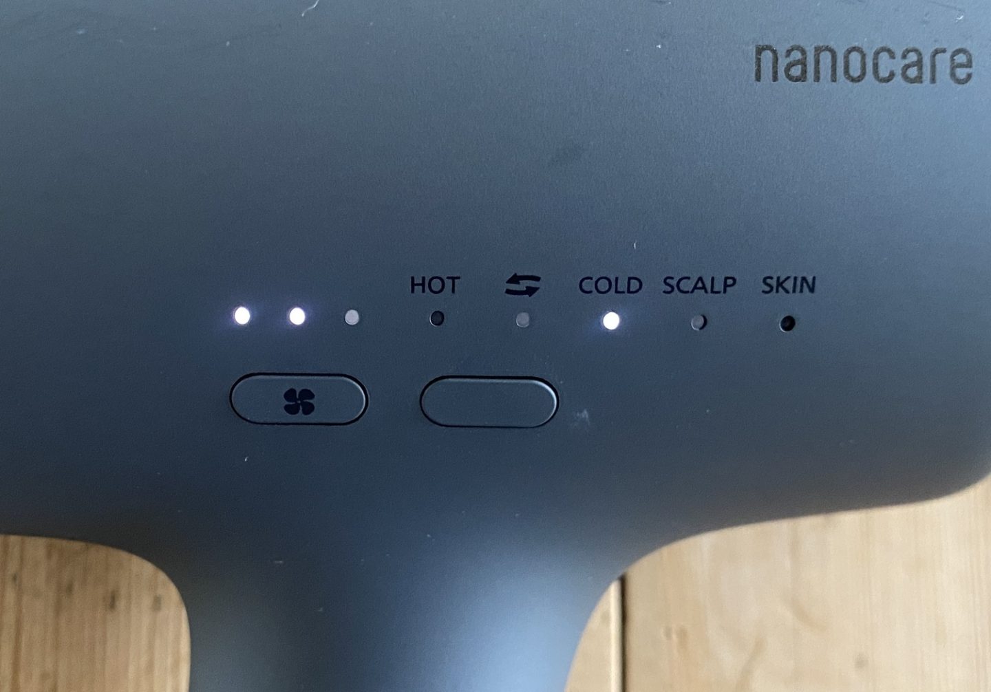 髪の毛を乾かすというより、吹き飛ばすという感覚に近い使用感。もちろん風量は3段階で調節可能です。