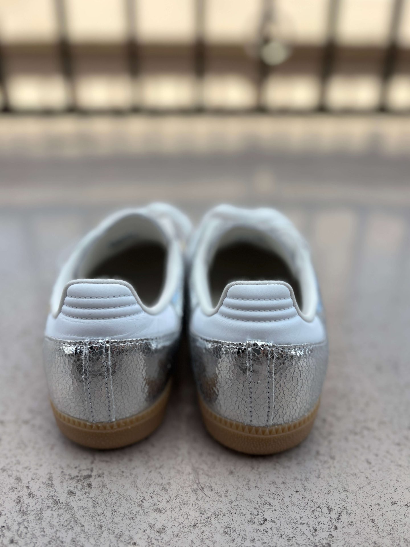 そして見つけたのがコレ! adidasの定番“サンバ”シリーズの「シルバー」(1万5,950円・税込)です。