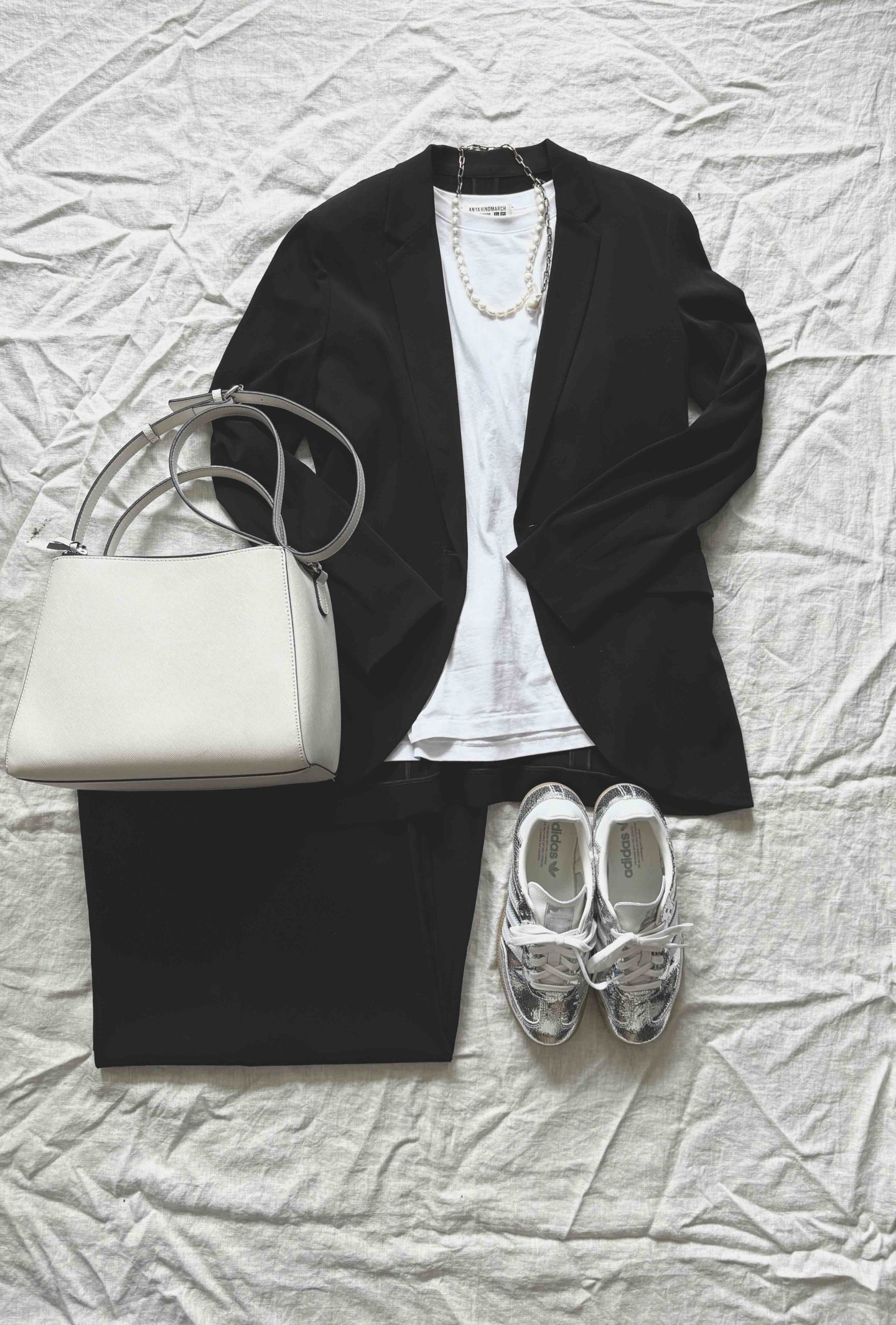 ちなみに。こんな黒ジャケット×パンツの日にも、このスニーカーが頼りになります。