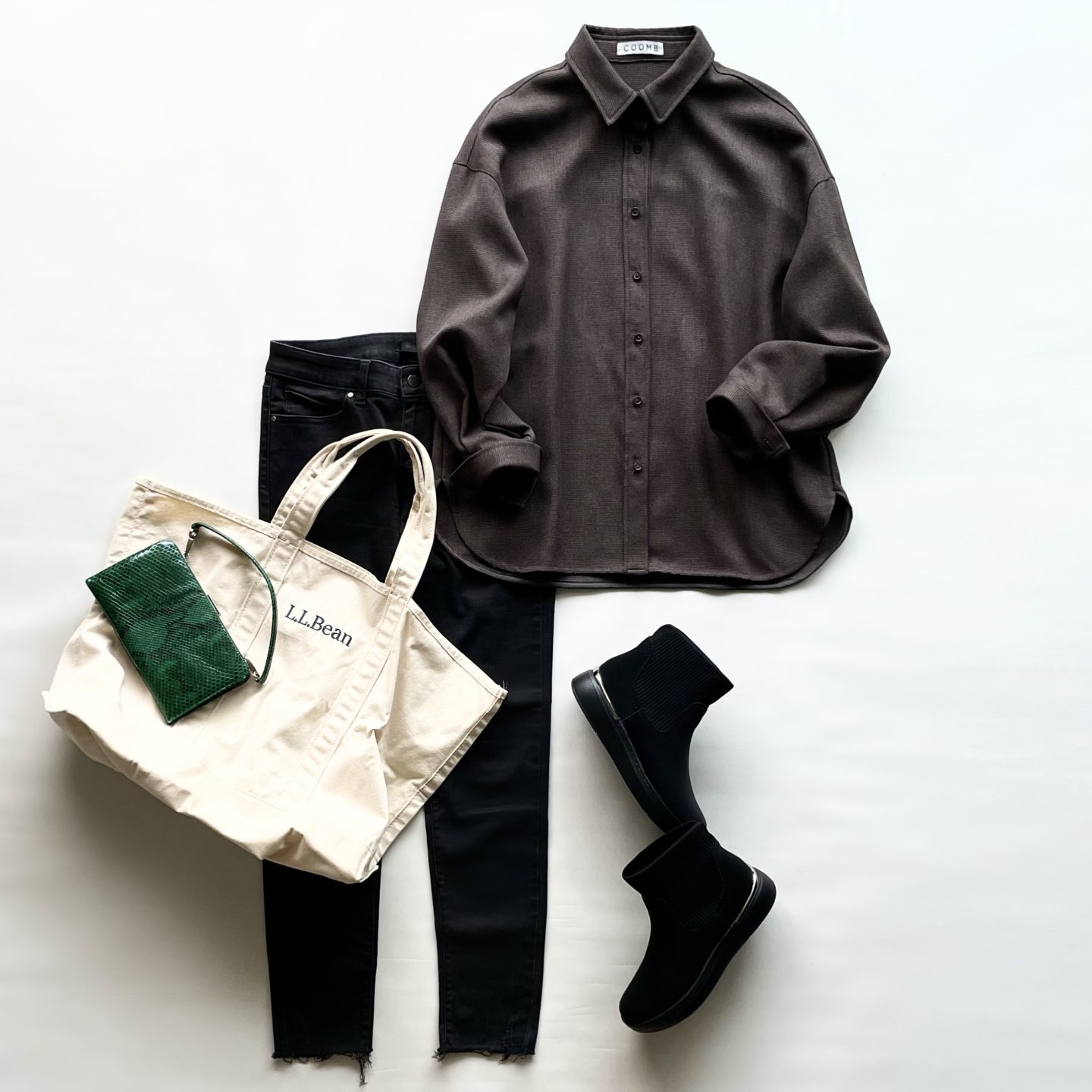 【Style01】オーバーサイズシャツで、ブーツのボリュームを調整して