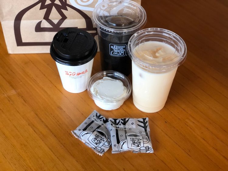 ドリンクのメニューも多彩で、コーヒーのみならず、コメダ名物の「ジェリコ」(コーヒーゼリー入りのアイスコーヒーにホイップクリームがのった飲み物)や「小豆小町」シリーズ(アイスコーヒーやミルク、アイスミルクティーに小倉あんを入れたドリンク)、「生レモンスカッシュ」、「バナナジュース」、「ミックスジュース」などコメダらしいドリンクもお持ち帰りできます。