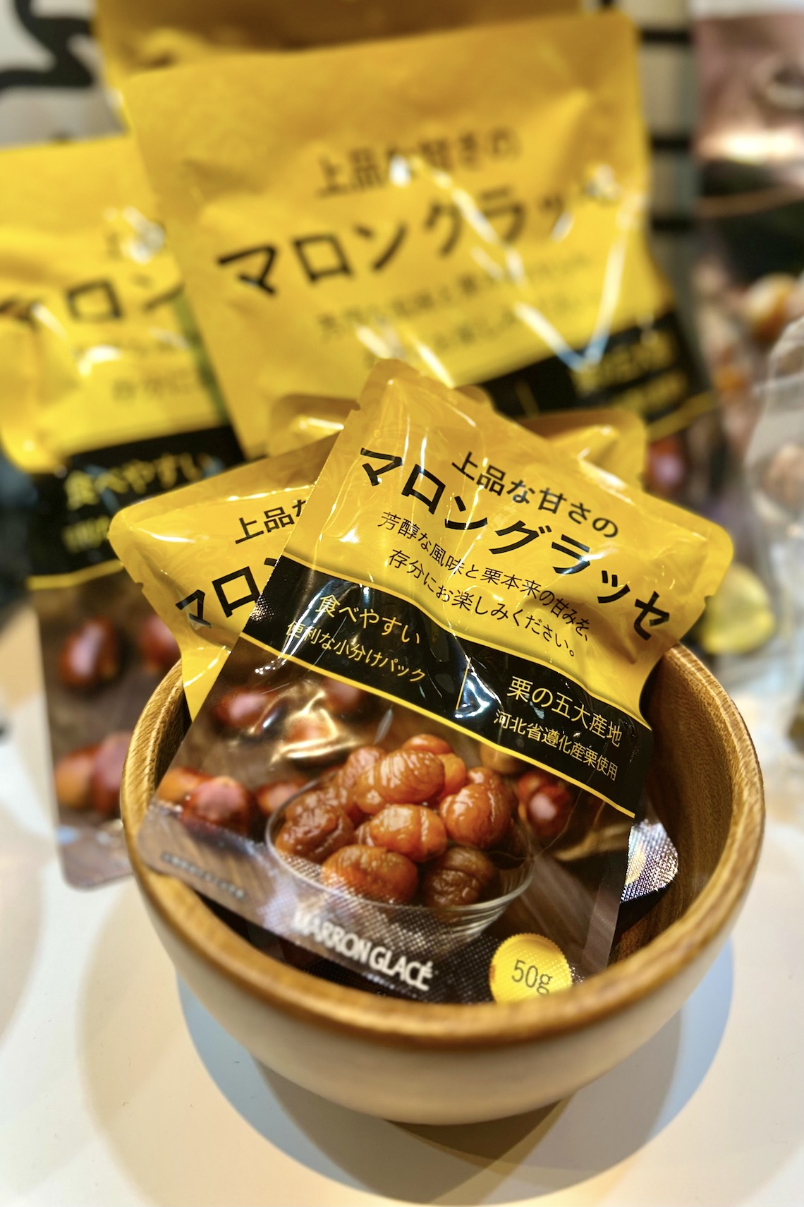 一足お先に試食したところ、小粒ながら一粒のインパクトが強い! ブランデーが使われているからでしょうか? お酒っぽさは感じませんでしたが、「有機むき栗」が素朴なおいしさなら、「マロングラッセ」はリッチな味わい。