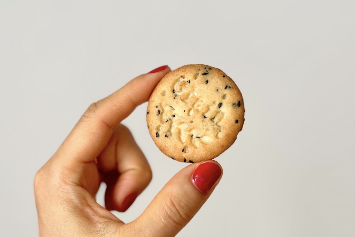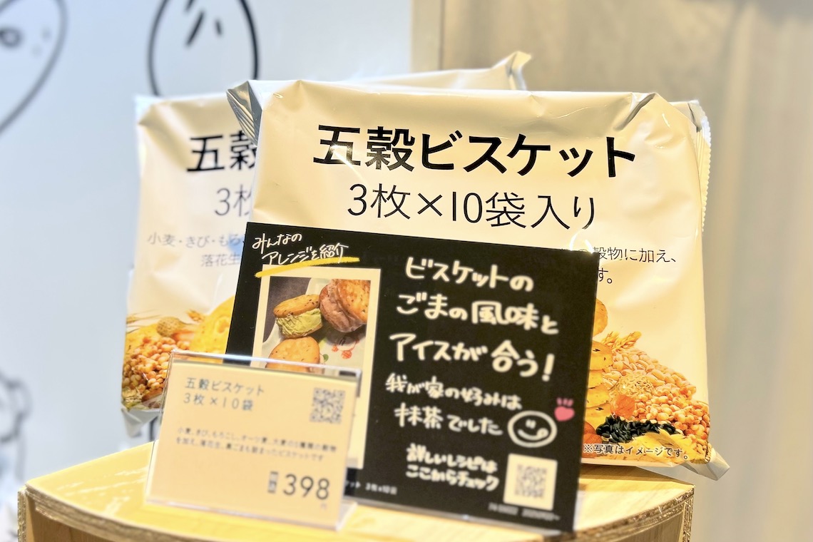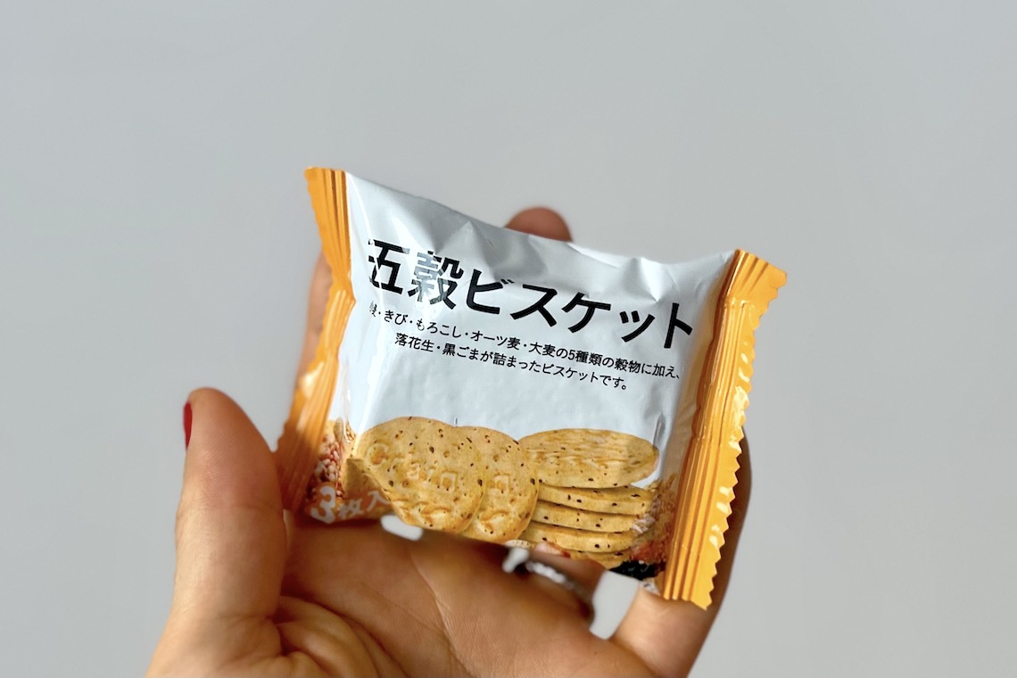 バイヤーさんが「まぁ、まずは食べてみてください」と差し出してくださったのが、「五穀ビスケット 3枚×10袋」(398円・税込)。サクッと頬張ると……ごまの豊かな風味がフワ〜ッと広がります。