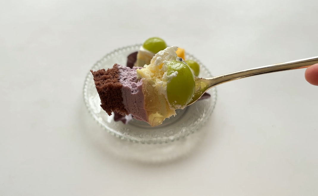 続いてシャインマスカット部分を食べると、一気に爽やかで華やかな香りが広がって、ケーキ全体の印象がガラッと変化!