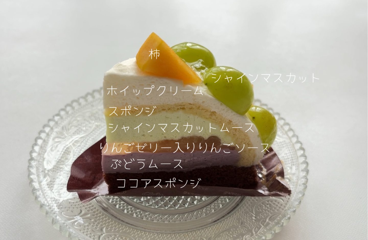 シャインマスカットの上品な香りと、柿のやさしい甘さ。秋の味覚を一度に楽しめる、今だけのご褒美ケーキ。
