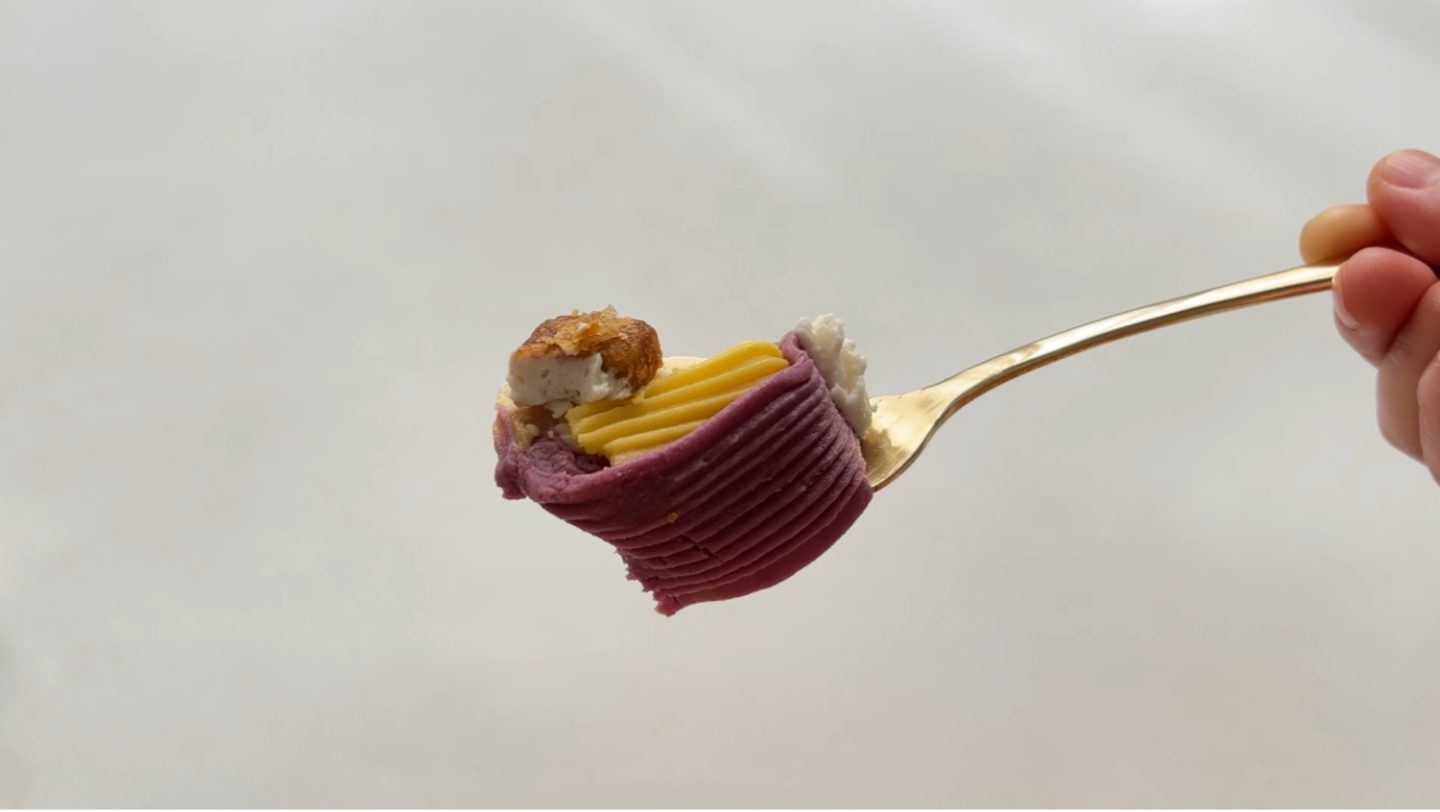 食べてみると、チーズ入り紫芋クリームのほんのり塩気と、さつまいもクリームのやさしい甘さのコントラストが絶妙。