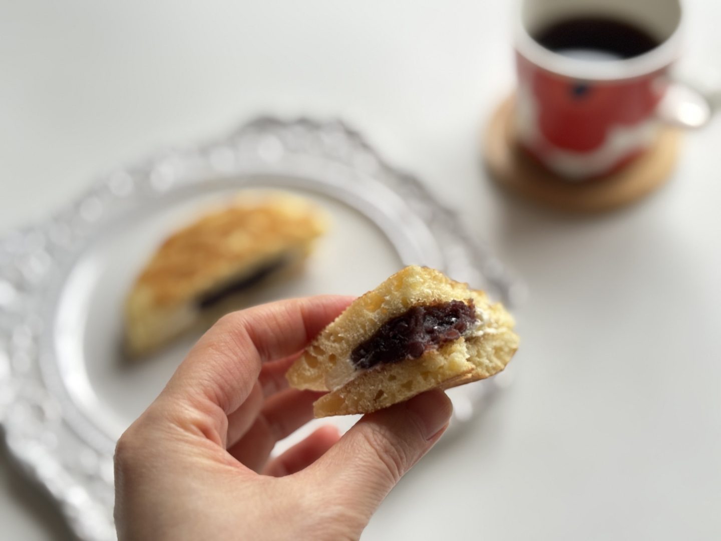 そのおかげで、焼き色は薄くふわっと口どけがよく、つぶ餡とバタークリームの美味しさをやさしく包み込みます。