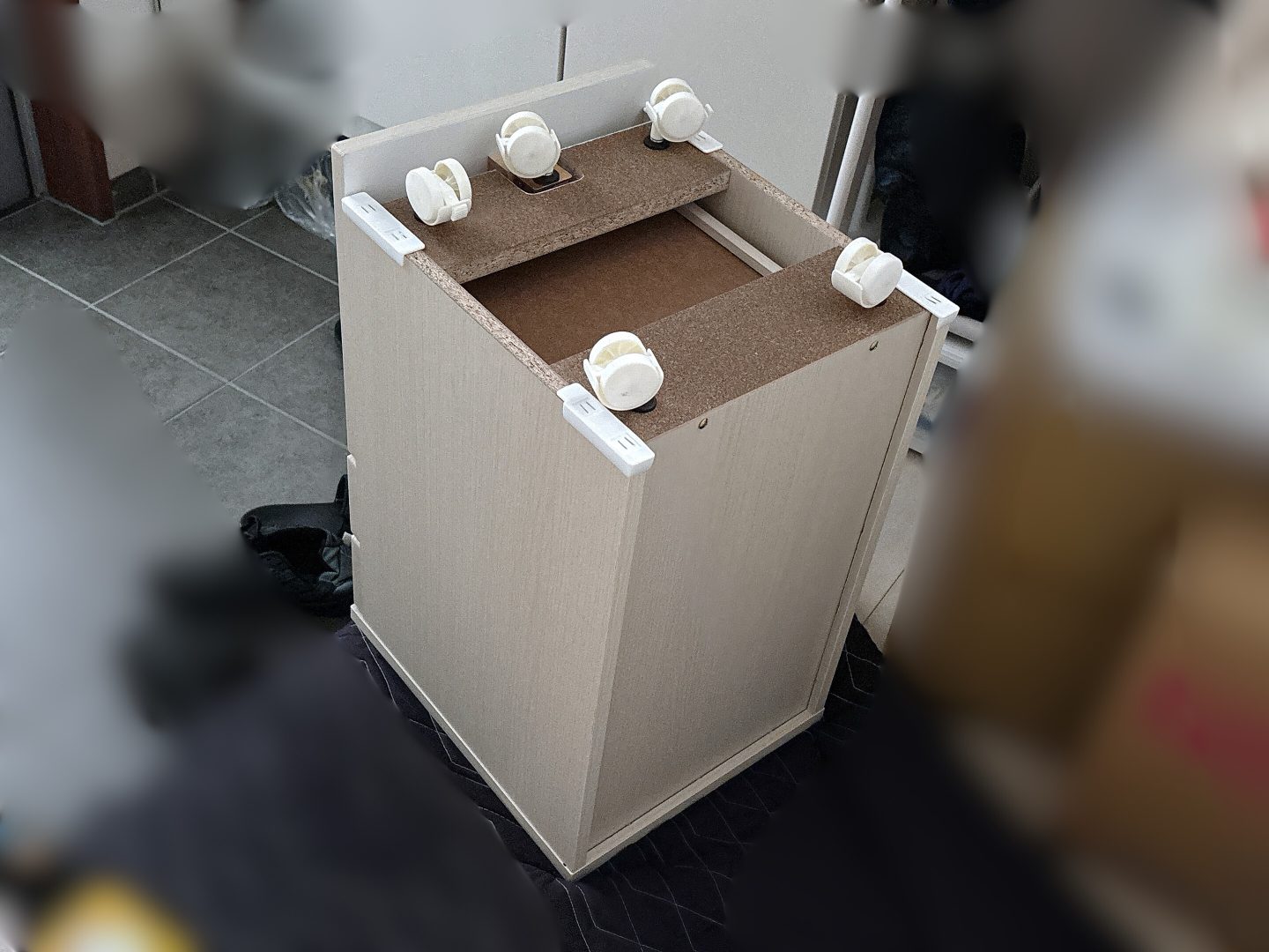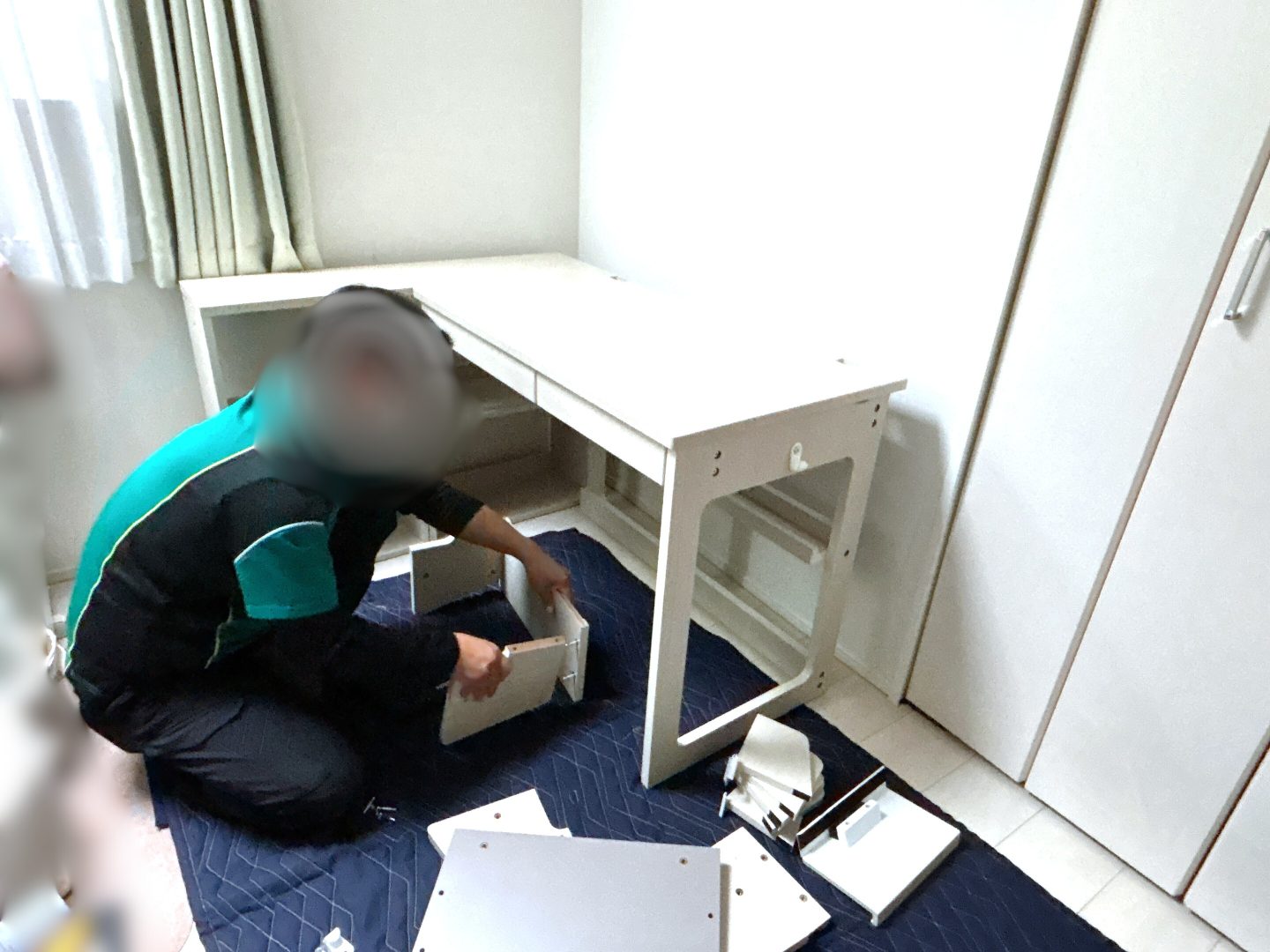 当日は、スタッフ2名での作業。説明から設置まで、ものの30分程度で終わりました。わが家は子ども部屋が2階にあるうえに、作業スペースがかなり狭いため、組み立てを依頼してよかったと思っています。