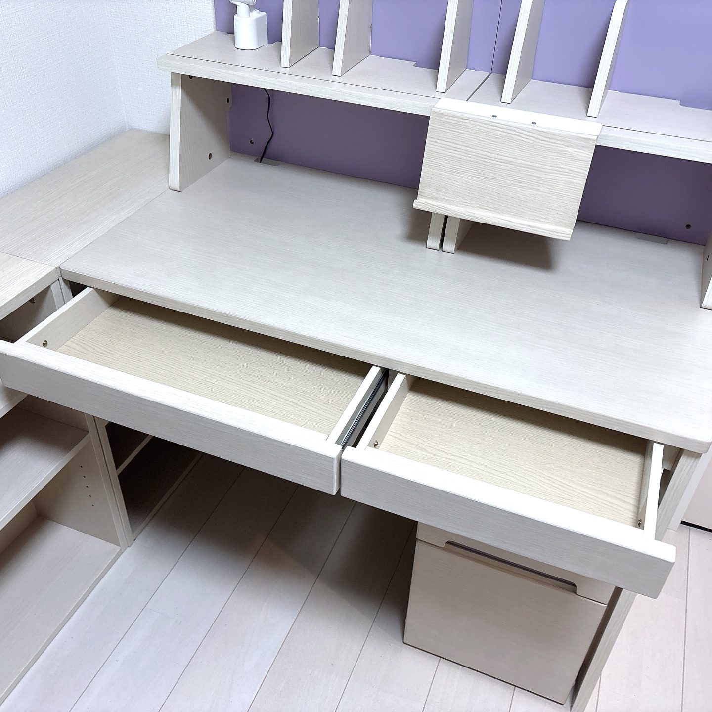 そんな収納問題も、くみあわせデスクなら解決! 引き出しや棚まで収納たっぷりなので、あれこれ持ち帰ってきても問題なさそうです。