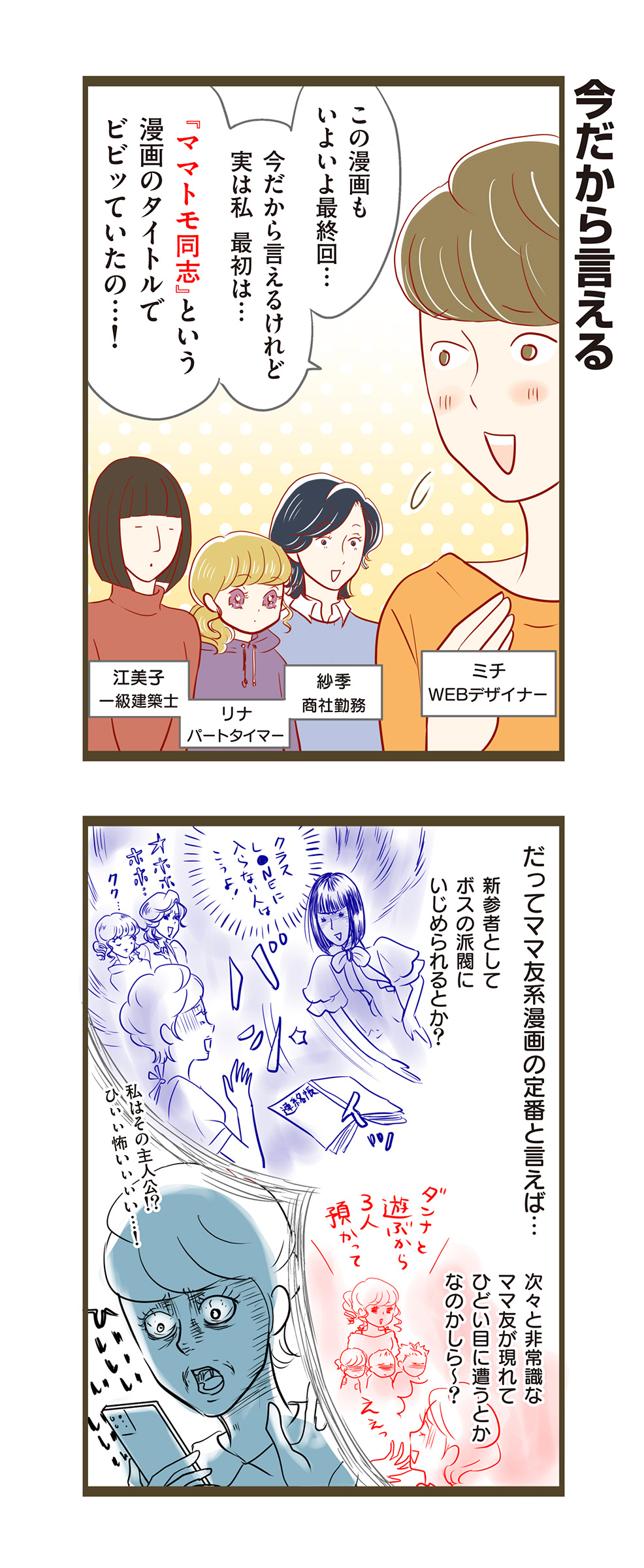 …ということで、記事の最後ですが、本連載『ママトモ同志』、今回が最終回です。「え?最終回?初めて読んだんですけど」って、そっちのほうに驚いた人は、ぜひ過去回のマンガも読んでやってくださいね(笑)。