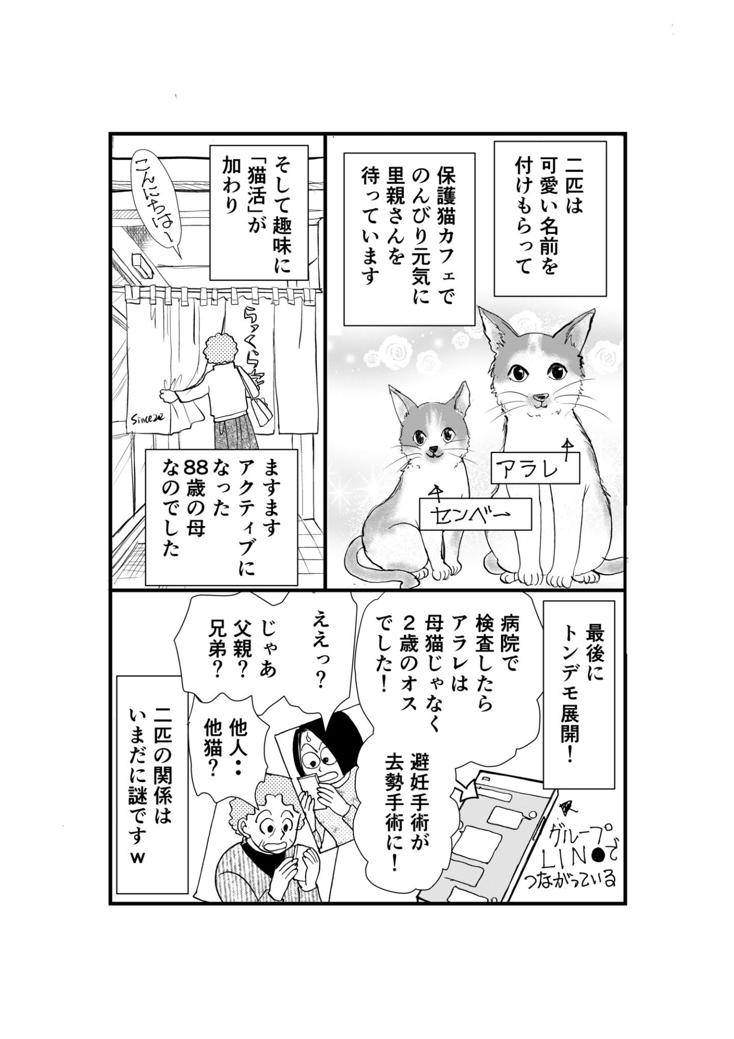 今回は大筋のみをご紹介しましたが、実際には猫を保護して状態を確認し避妊手術をする、猫の譲渡先を探す、高齢ゆえの体力問題などの困りごとがたくさんあったとか。それらのエピソードは今後、小越さんのxにて発表していくそうです。