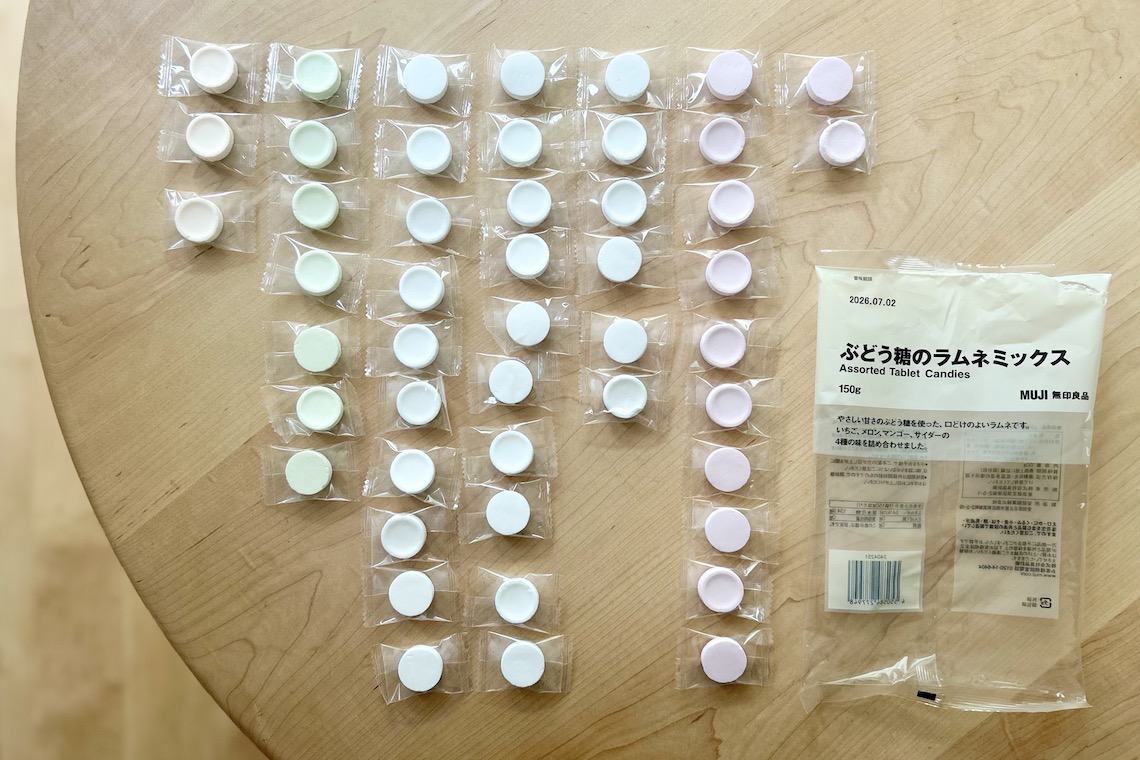 ふだん筆者は『無印良品』では、3つで税込み300円の「ぽち菓子」で「ミックスラムネ」(1個120円・税込)をリピートしています。そちらは