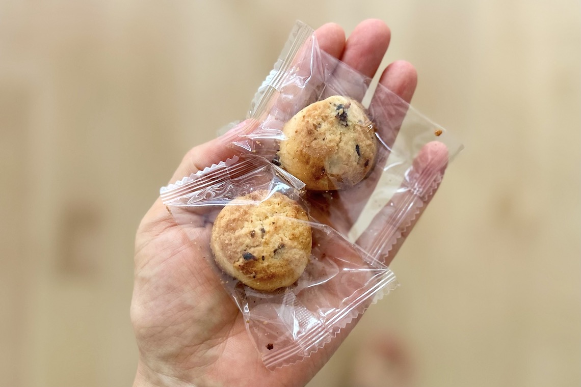 食感は、サクッほろっ。一口かじると中から干しぶどうが顔を出し、ふわりとココナッツの風味が追いかけてきます。