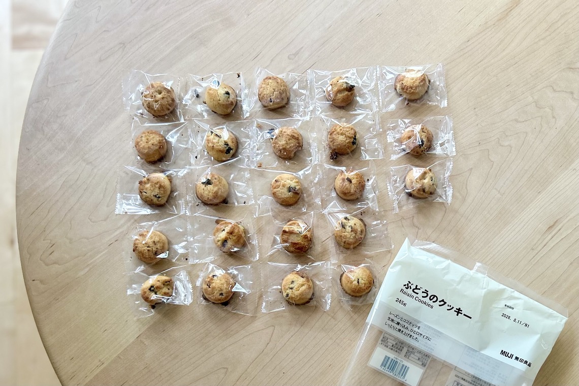 『無印良品』の「大袋菓子」の多くは個包装されています。しかも、一つひとつが食べ切りサイズ。万が一のときにも分け合いやすいですし、開封後に一度で食べ切れなくても大丈夫という安心感があります。