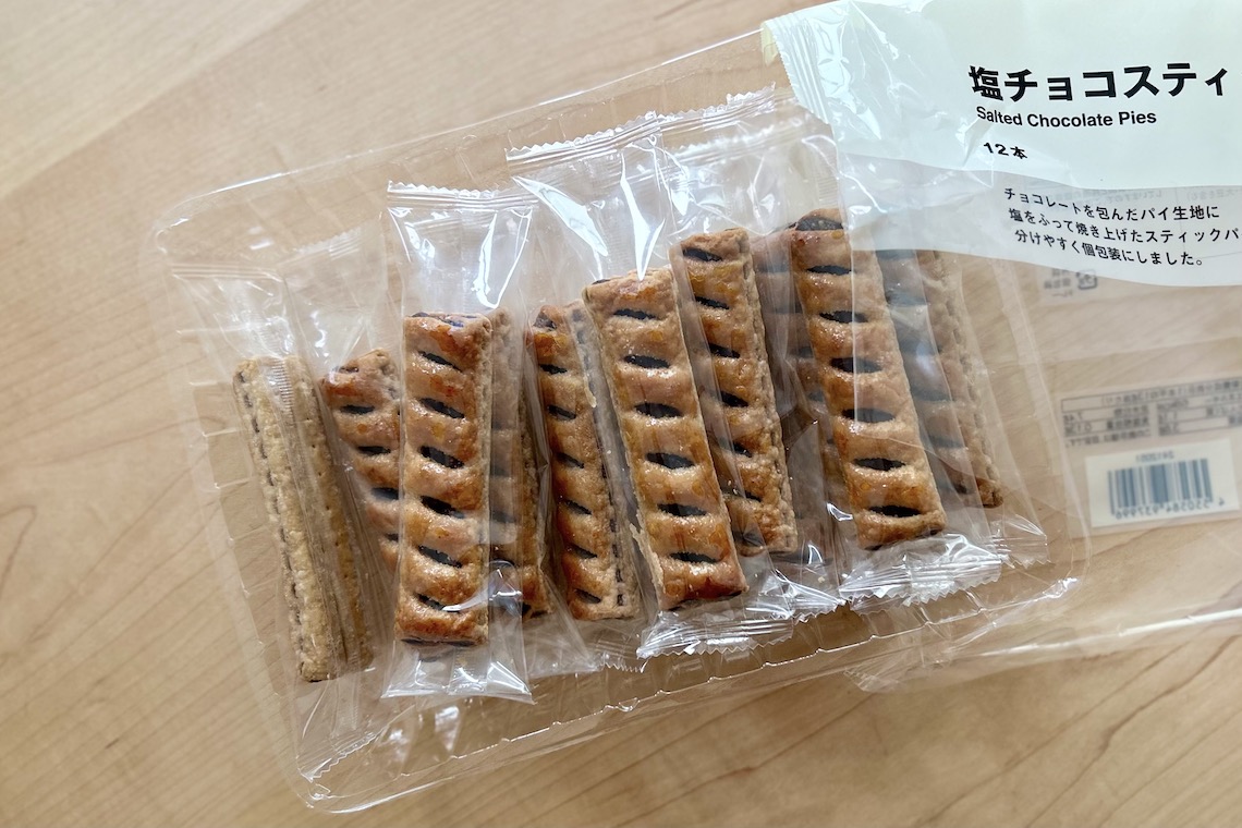 余談ですが、筆者は好きが高じて『無印良品』でアルバイトしていたこともあるんです。食品担当になった週末は、朝から「塩チョコスティックパイ」を棚へぎっしりストックするのが仕事の一つ。まとめ買いするお客様もいらっしゃる、ファンの多いお菓子でした。