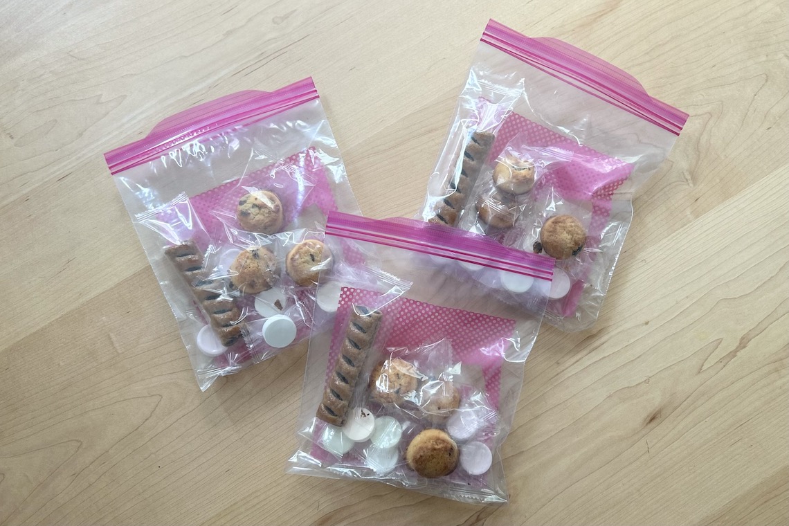 ジッパー付きのかわいいビニール袋へ小分けにすれば、子ども同士でプチギフトのようにも使える。