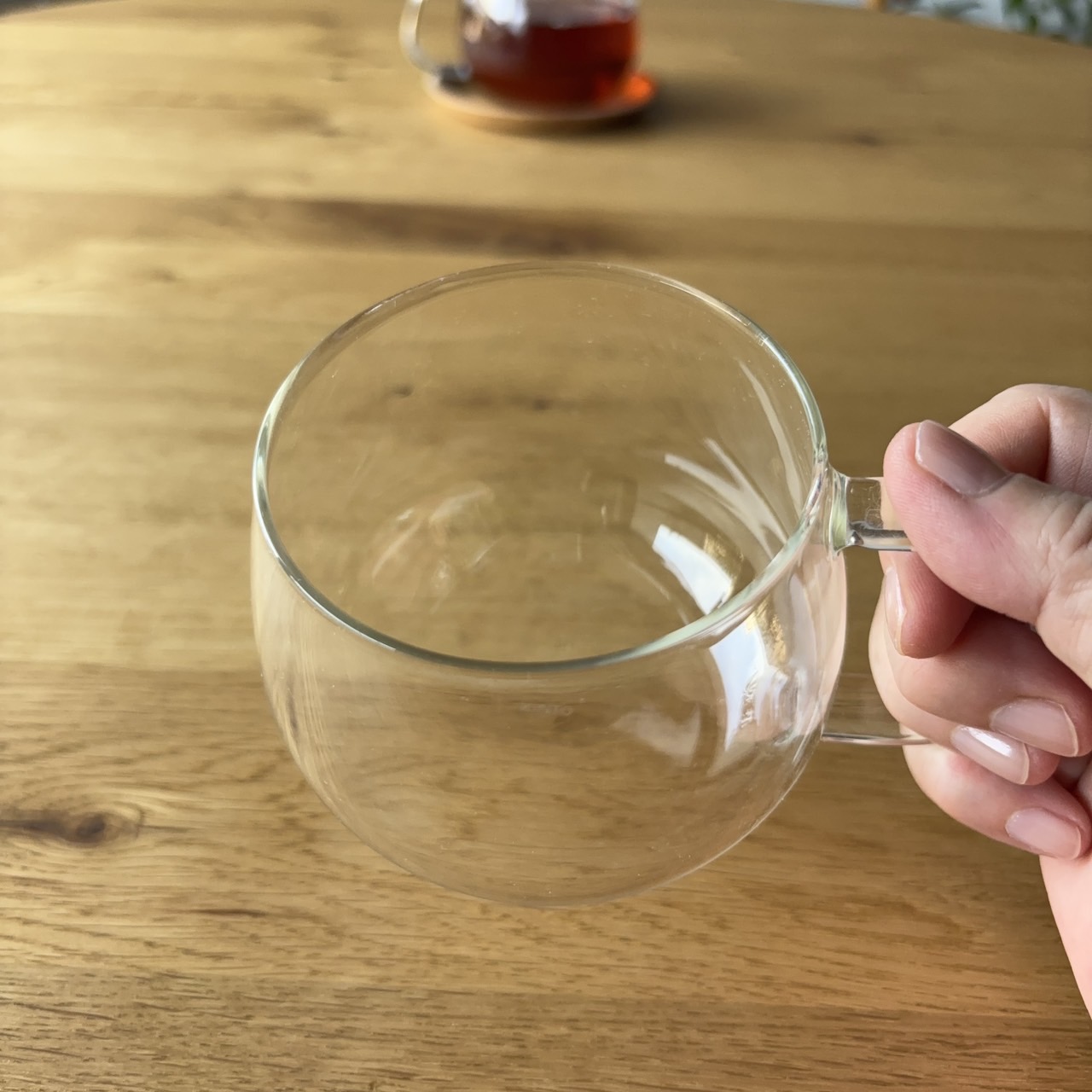 丸いコロンとした形、持ちやすいハンドル。お茶もコーヒーもジュースも水も……何を入れてもサマになっているように思え(笑)、ずっと使っているのに飽きません!
