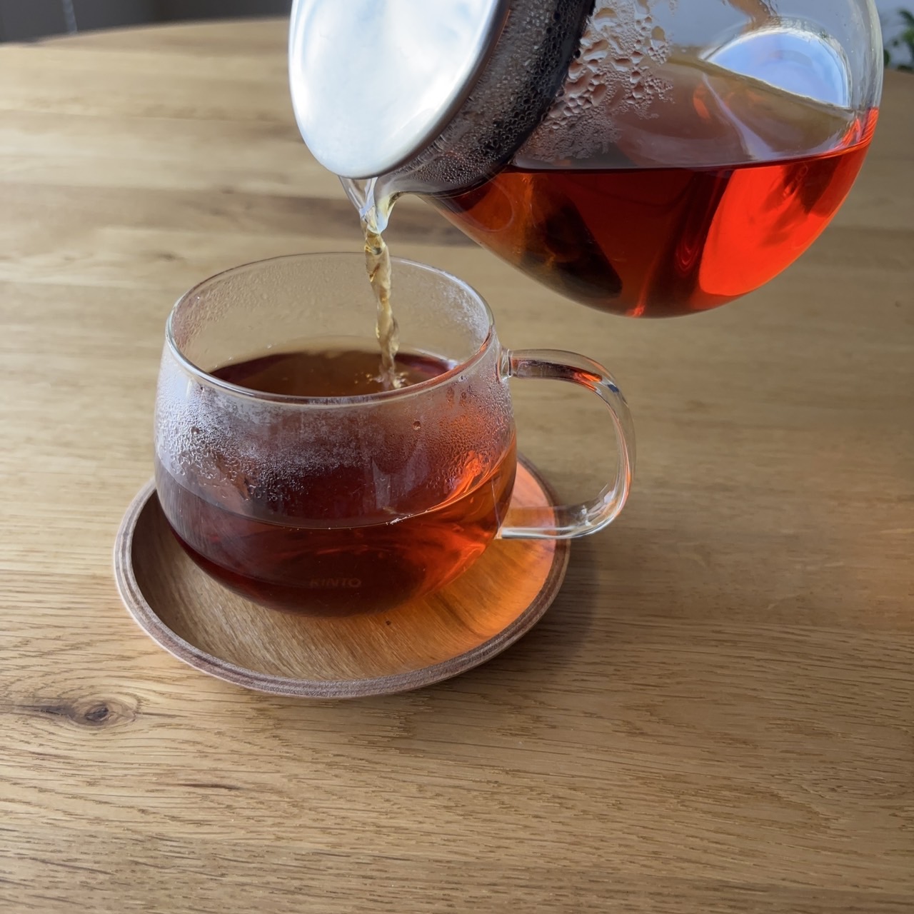 冷たい飲み物も熱い飲み物も『KINTO』の「UNITEA カップ 350ml」を長年、そして1年中使っています。