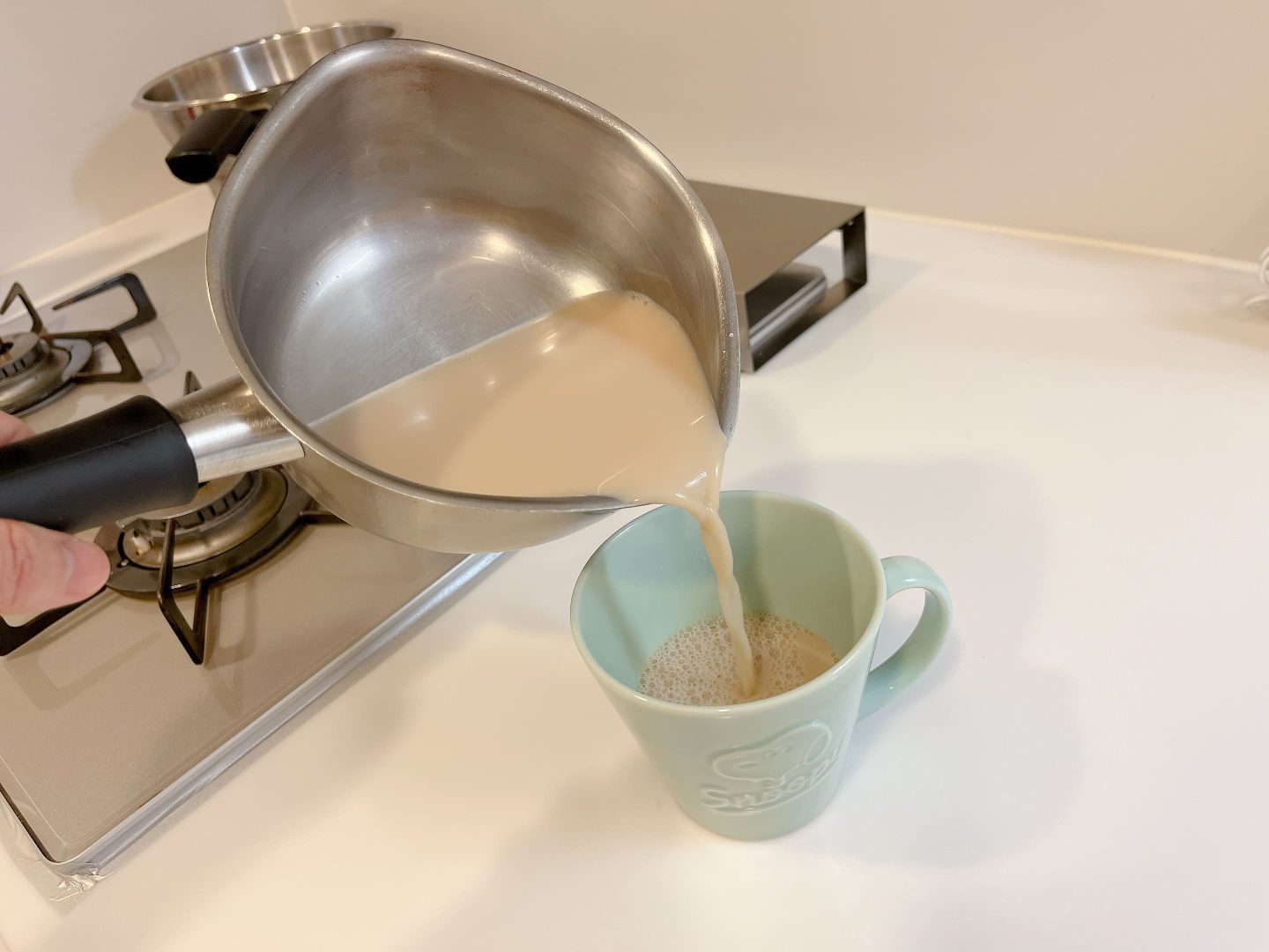このミルクパンの特徴は、両サイドの注ぎ口。お湯やスープを注いでも全く液だれがなく、利き手を選ばすスムーズに注ぐことができるところが、大のお気に入りポイントです。