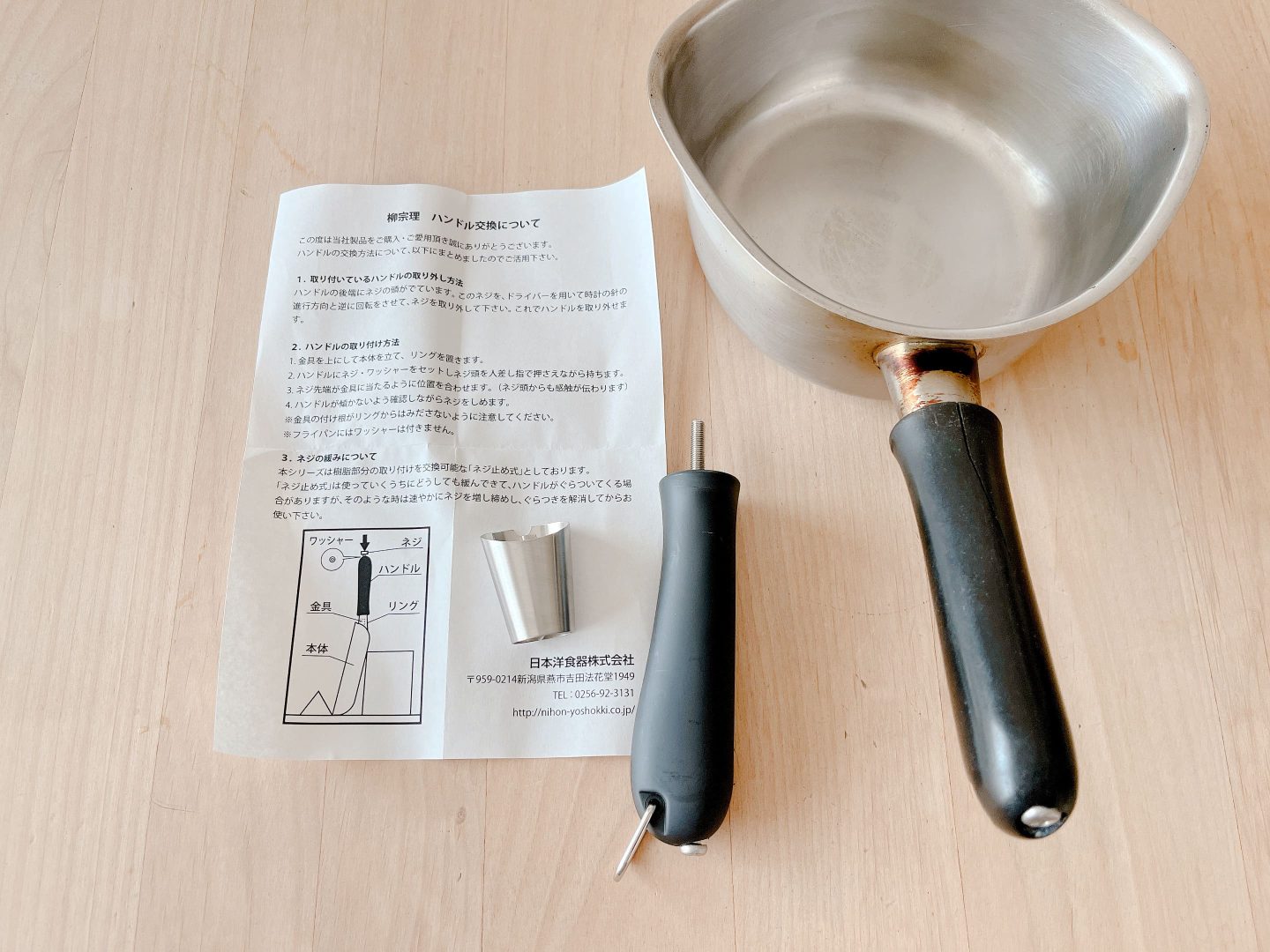 今回、我が家のミルクパンもハンドル交換をしました。お値段は送料込みで1,315円(振込手数料は別途負担)。